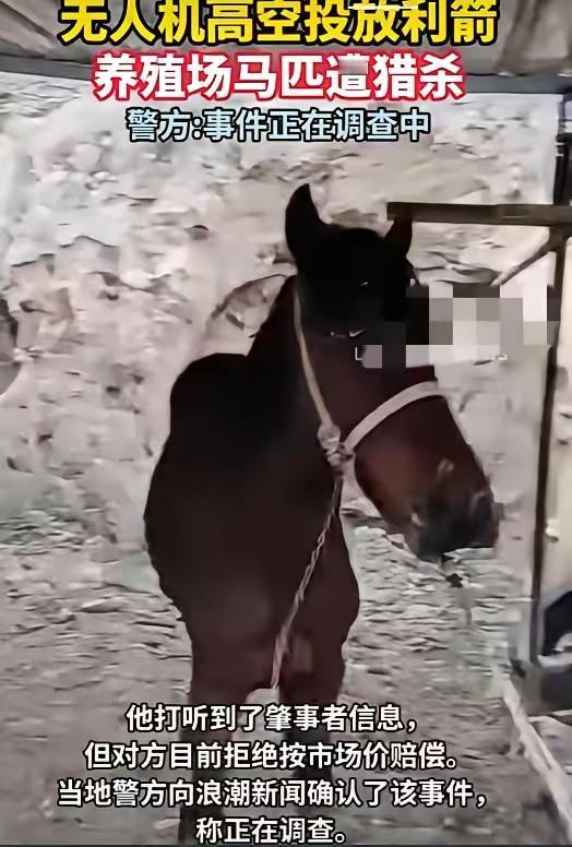 山西吕梁的家养马被利箭射杀,无人机变“空中凶器”。 近日,田先生养了两年多的马倒在血泊中,一支75厘米长、一斤多重的利箭从它身体贯穿而过,当场殒命。这不是狩猎事故,而是有人操控热成像无人机夜猎野猪时,因雾气误判目标酿成的悲剧。这匹花1万元买下、从小驯化的马,不仅是情感寄托,更是白天载客观光的重要收入来源,损失无法挽回。 更令人脊背发凉的是,这并非孤例。湖南益阳的黑山羊被无人机投箭猎捕,长沙养猪场丢失20多头猪、损失近7万元,山西晋城的骆驼也惨遭类似毒手,身上留下深深的贯穿伤。这些案件背后,是一条日渐成型的灰色产业链——电商平台上,热成像无人机搭配空投器的整套设备售价约3万元,被称作“空投牙签”的三棱箭头单价50至100元即可购得,商家甚至提供改装教程,却对购买者资质审核流于形式。 最可怕的是其致命威力。律师指出,无人机空投的三棱箭头动能可达普通弓弩的3倍,足以穿透牲畜骨骼,若误伤人类,后果不堪设想。更揪心的是监管困境:虽然湖南浏阳已明确将“无人机辅助投射箭支”列为禁猎工具,但全国多数地区尚无类似规定,且对箭头是否属于管制器具存在定性争议。 目前吕梁警方已介入案件,肇事者虽已找到,但赔偿协商仍在进行中。可马的命、养殖户的损失能挽回,公共安全的隐患谁来填补?科技变成了空中凶器,亟需明确法规红线,堵住电商销售漏洞,让无人机回归便民本质,而非悬在人们头顶的安全威胁。想想脊背发亮,大家想过没有?如果夜间行人在山野露营蹲坑,被热成像当做野猪高空射杀,是多么可怕的事情啊!