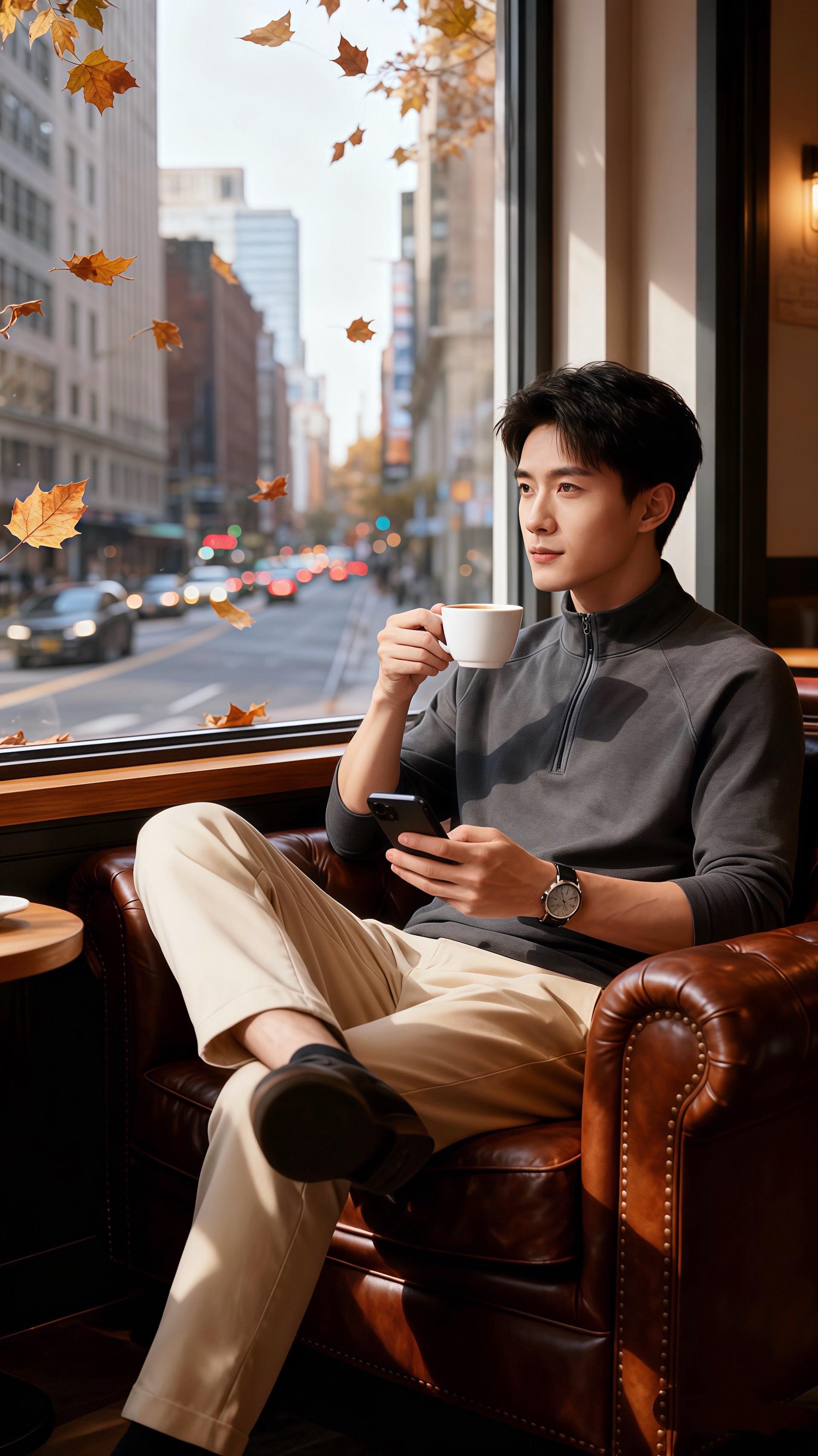 窗外的枫叶卷着风掠过,像把过往的局促都揉成了温柔的弧。他指尖划过衣料的细腻纹理,想起面试那天,HR笑着说“你的上衣很衬你的状态”。其实哪是上衣衬人,是那些抱着方案在路灯下改到凌晨的日子,把“撑住”织成了妥帖的底气。