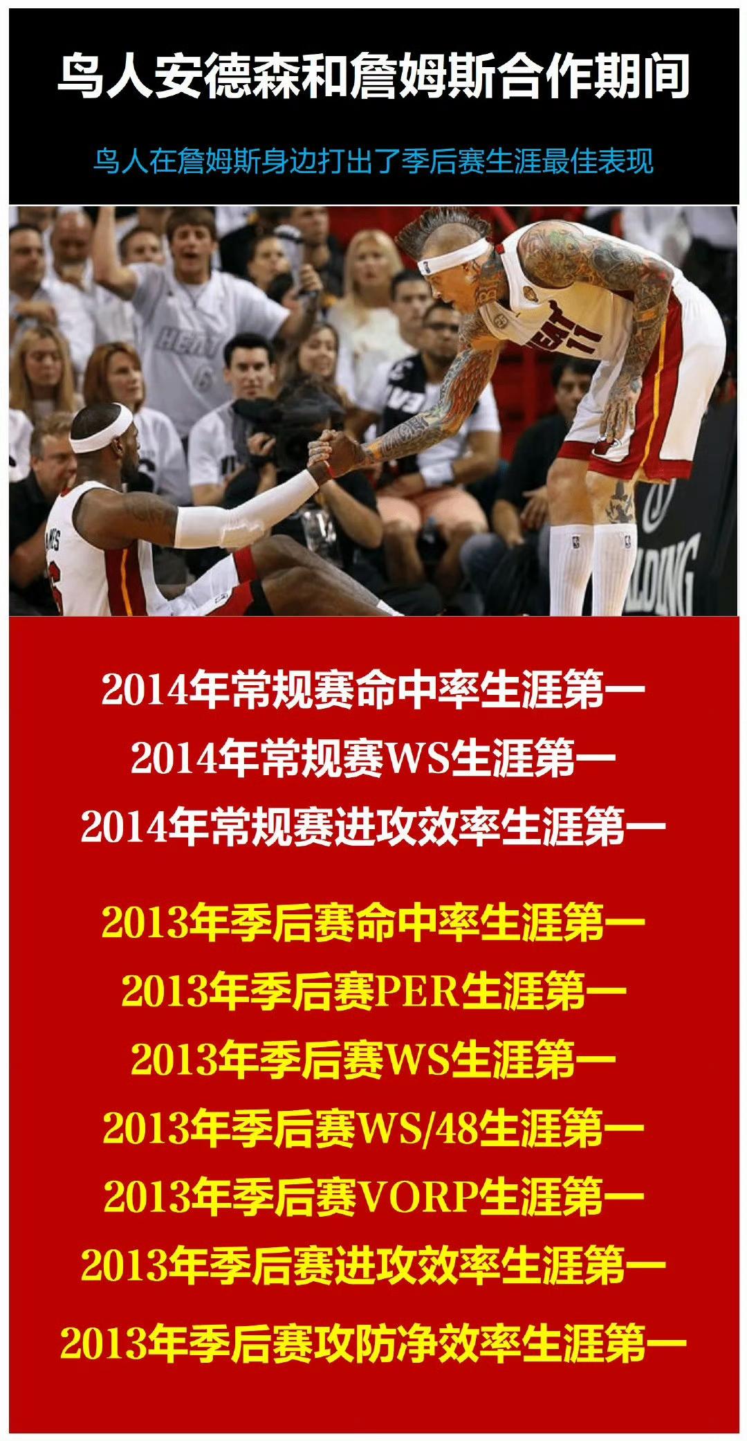 斯玛特给湖人注入的精神力量无穷大,点燃全场的时候数据无法体现。 斯玛特以“斗牛犬”般的防守闻名,他的每一次抢断、倒地拼抢和怒吼,都能为队友注入强心剂,能给全队打鸡血。 他让大家想起了谁?热火时期的鸟人安德森时时引爆全场,詹姆斯热火两连冠,他功不可没。