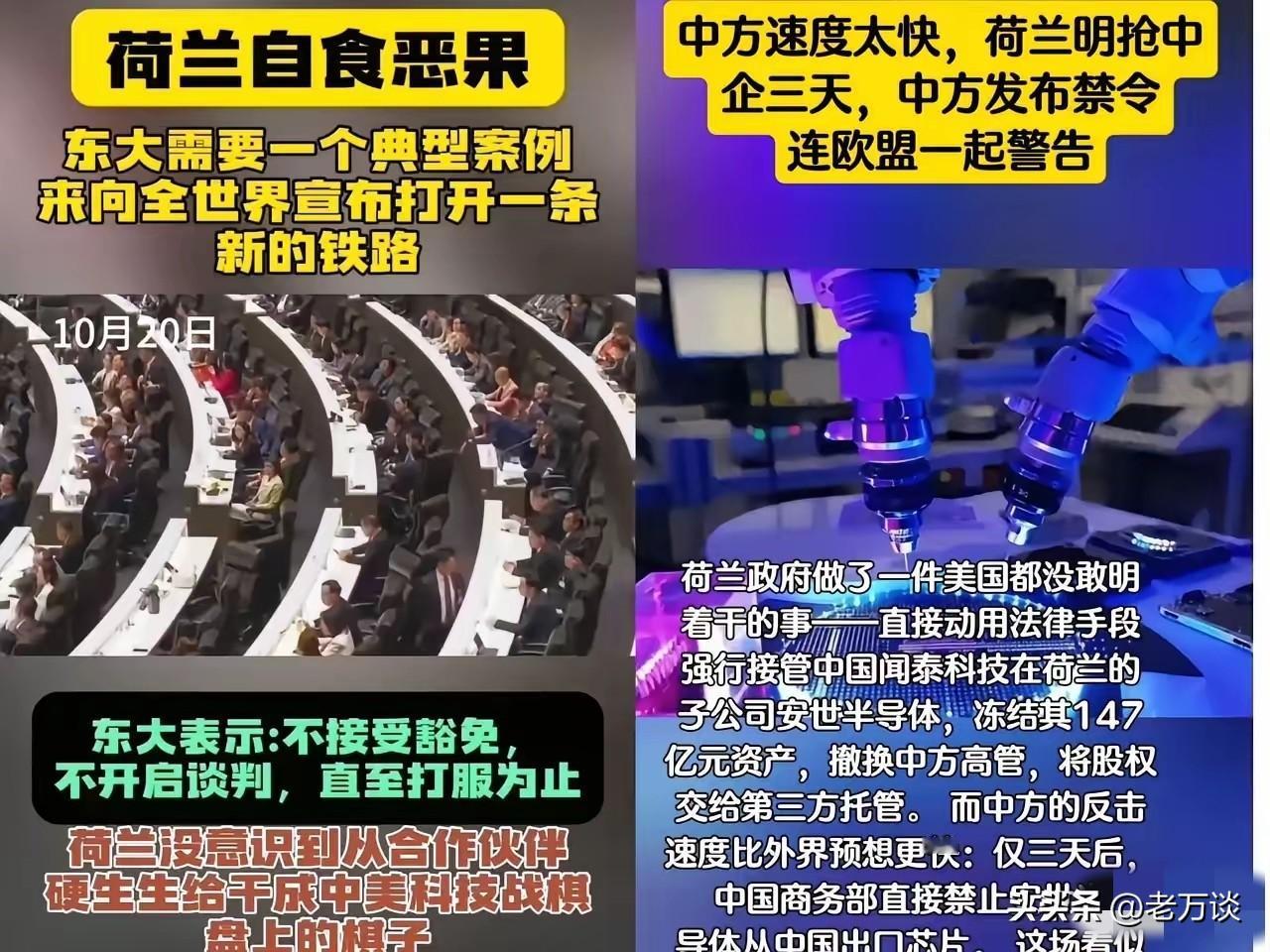 小小荷兰国既然做了美国都不敢做的事情,用法律手段强行掠夺中国企业在荷兰的资产,他们以为这样就能对美国交上一份满意的投名状,而且也可以打击中国。但是他们却想不到东大国的反制措施快狠准,必须拿荷兰进行祭旗!必须让西方国家认识到,中国早就已经不是百年前的中国,中国不惹事,但是绝对也不怕事。对于故意挑起事端的国家,必须让他们付出沉重的代价,让他们为自己的行为负责。