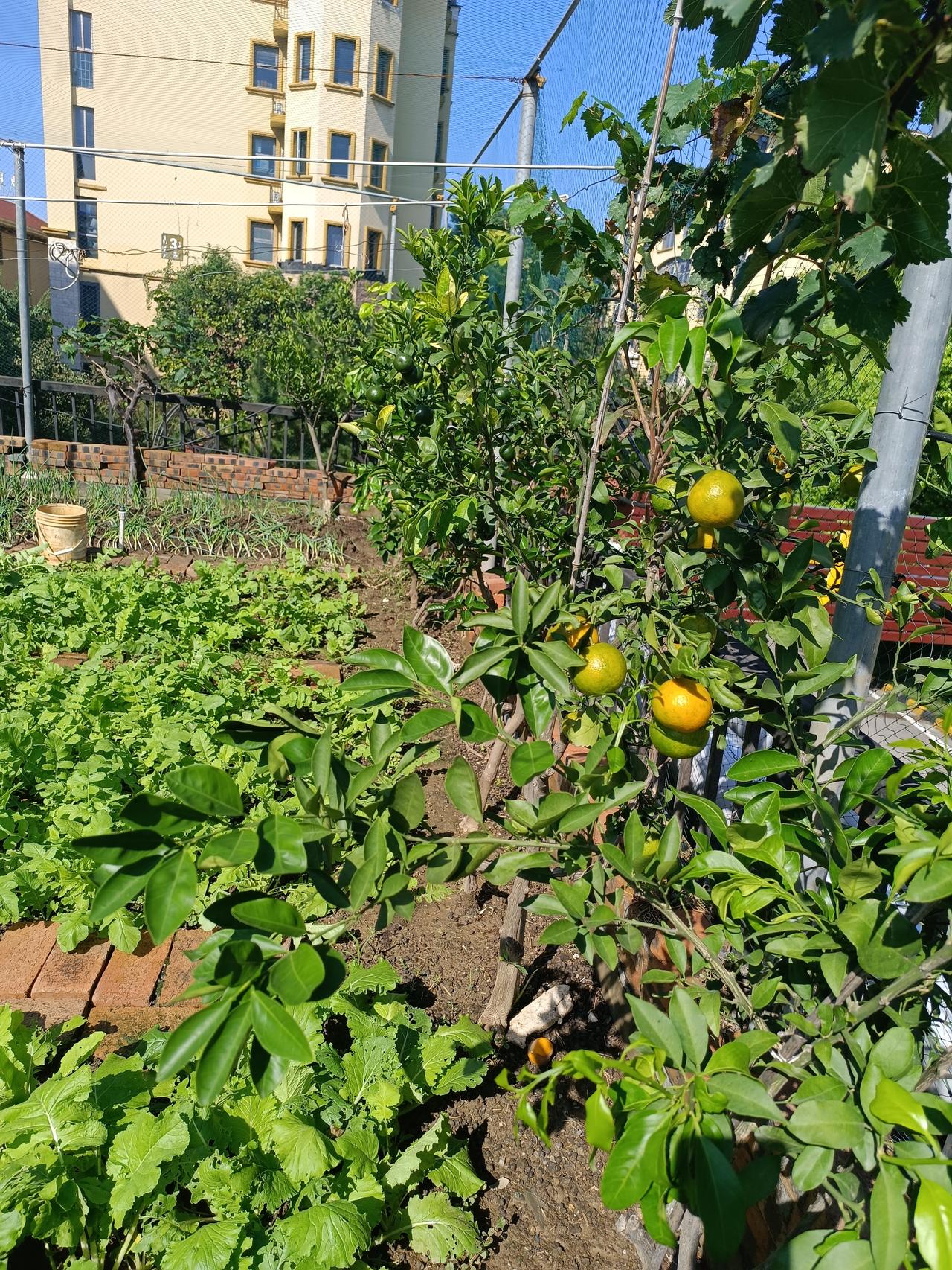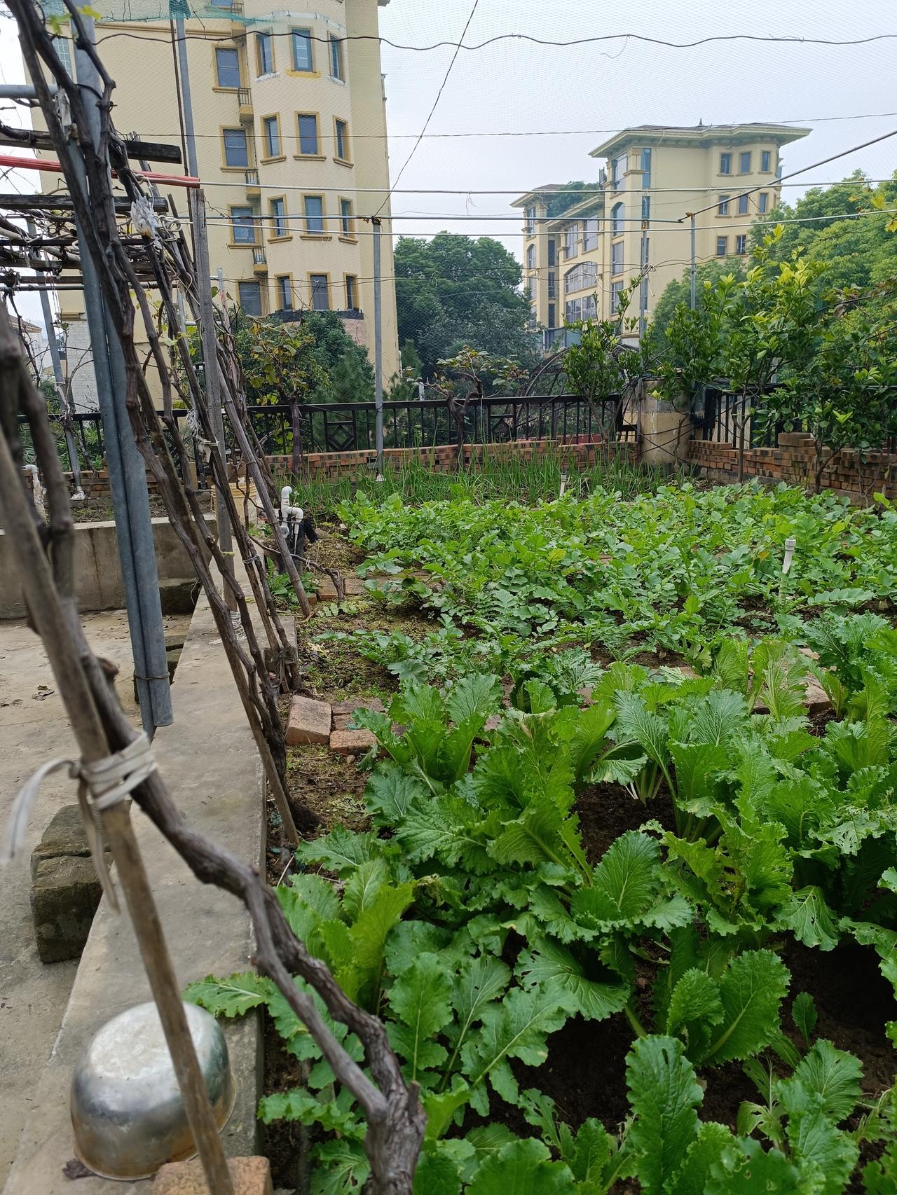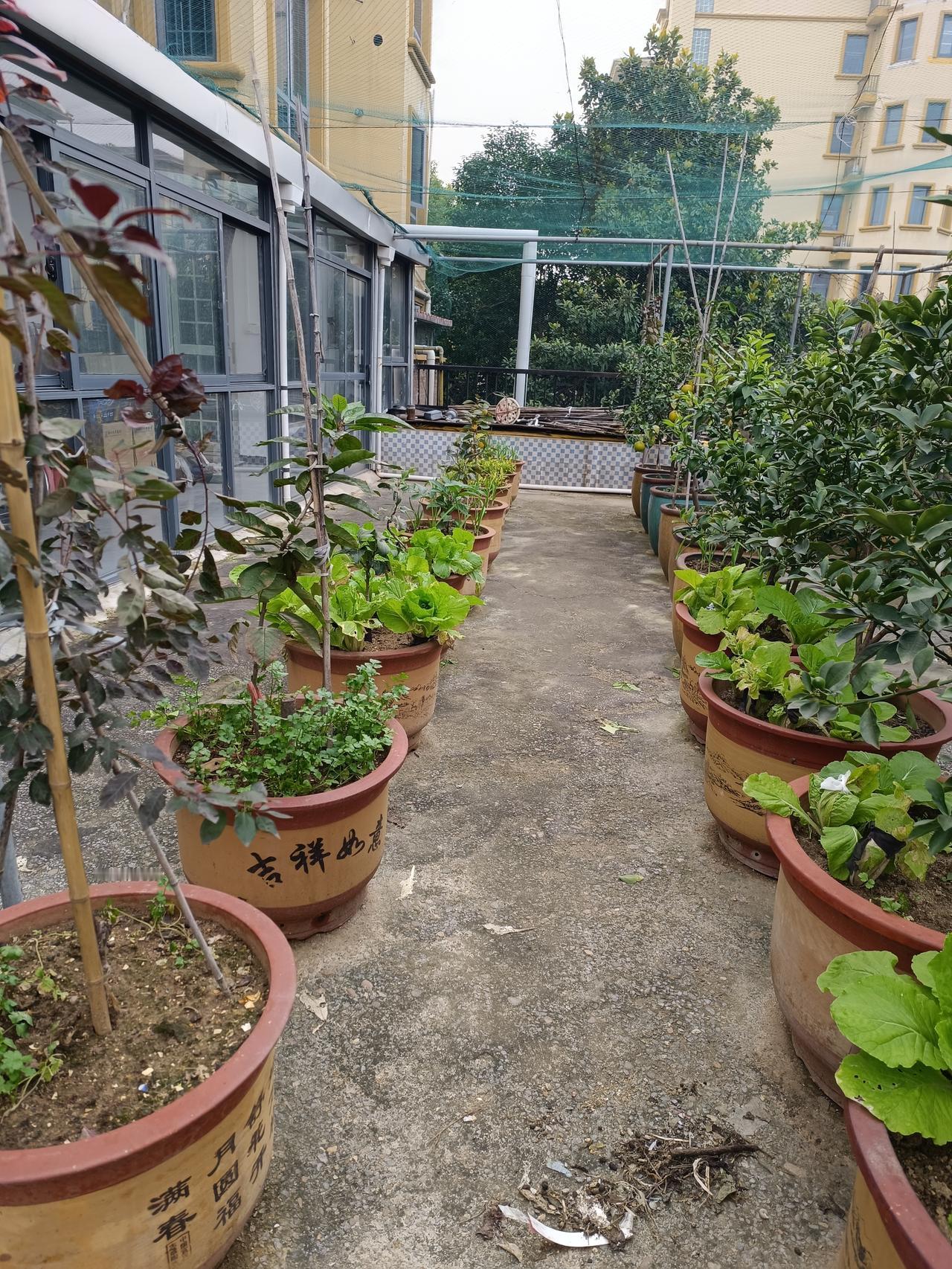 我家大平台有500平方,种的有水果和青菜。今年种的桔子长势很好,己经成熟了,又是大丰收。 我爸今年80多岁了,喜欢种水果和蔬菜,在2楼平台上种了几十棵水果树,其中有桔子树40多棵,葡萄树20多棵,橙子树10几棵,车里子10棵。种这些水果怕小鸟吃,又在空中安了防护网,花了不少钱。 种的青菜有,大白菜、白萝卜,香菜、大蒜、菠菜、大葱、韭菜、西兰花、生菜、芹菜等等。 种这些果树和青菜,一年四季都很忙。夏天这些菜和果树不耐旱,每天都要浇水,一月水电费花了不少钱,实际是得不偿失。 老爸喜欢这样种菜,家里人都反对。因为年龄大了,干这些活太累,身体受不了,可怎么劝他都没用,他就是一个爱干活的人,一天不干活难受。