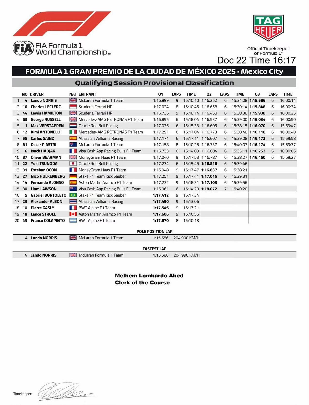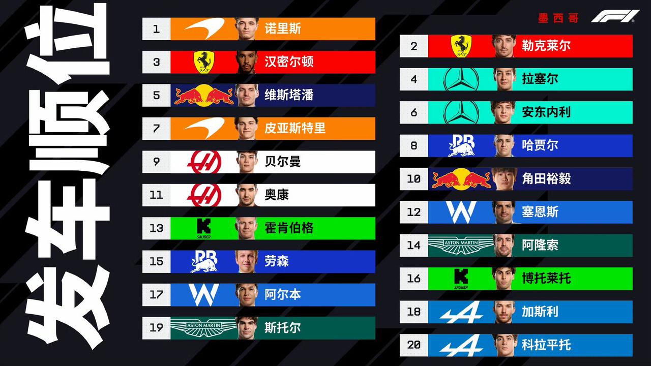 诺里斯要拿总冠军?三位争冠车手的起步顺位:皮亚P7、诺里斯P1、潘子P5。 皮亚斯特里:其实赛车各方面感觉都还行,就是速度上不去,这有点迷。 维斯塔潘:“今天没有一圈感觉良好。赛车没有平衡,也没有抓地力。”“我预计明天情况只会变得更糟。” 最难过的一点就是上周末潘子才刚承认自己感觉有那个希望,然后RB21就用自己的负面升级直接幻灭所有……