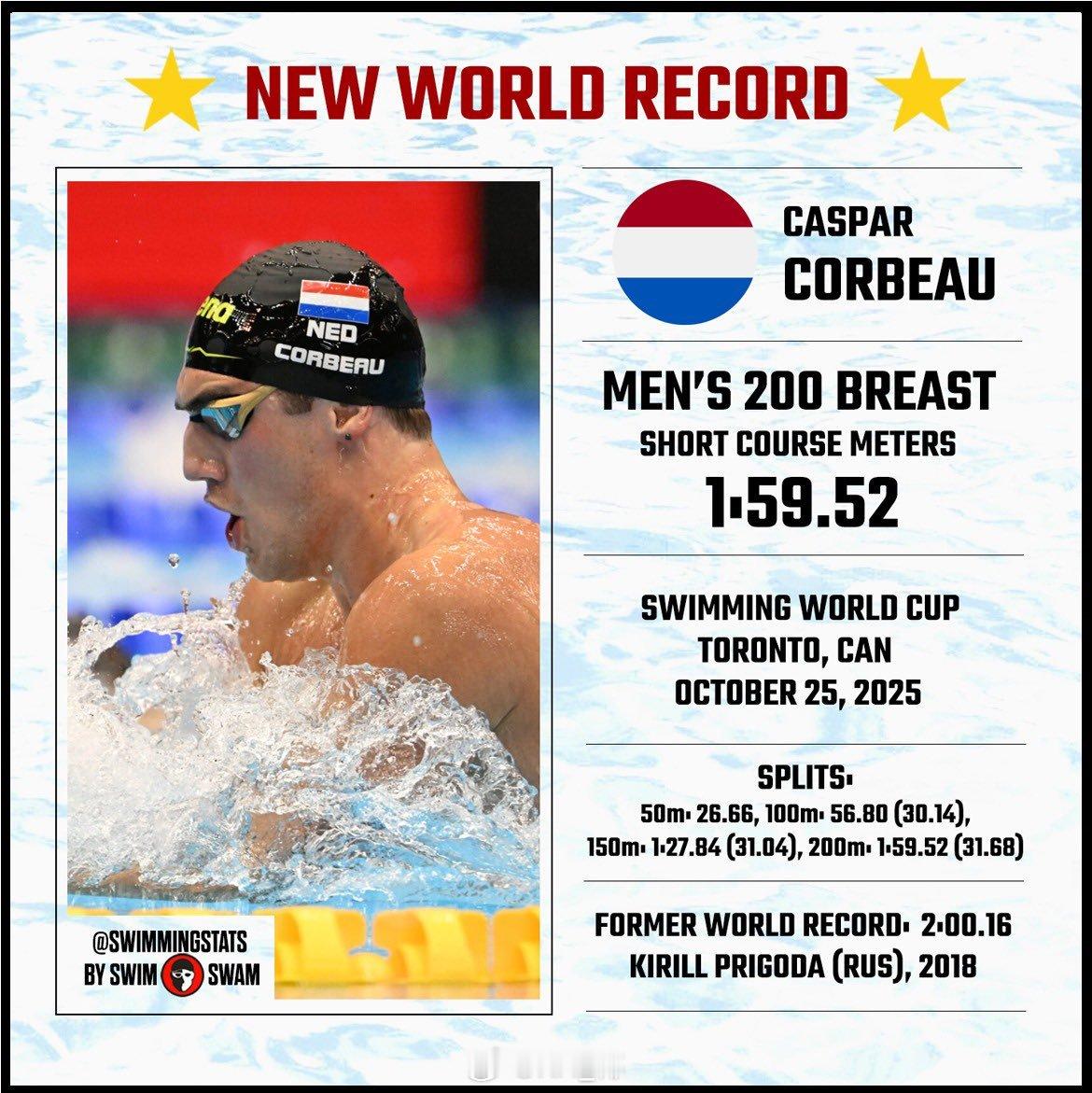 ⭐️男200蛙:🇳🇱Caspar Corbeau 1:59.52 WR
