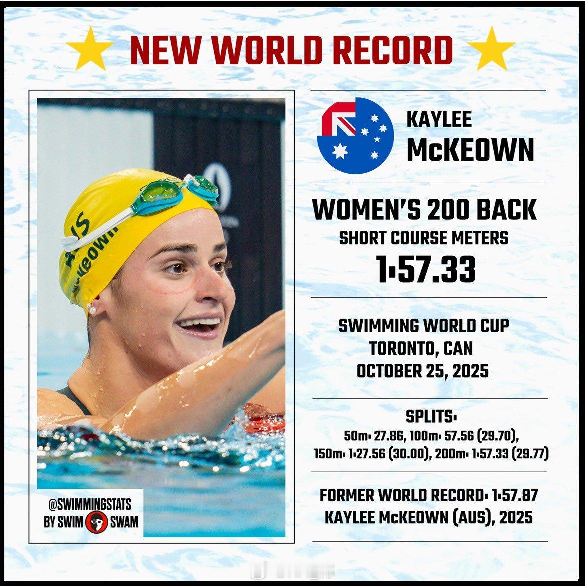 ⭐️女200仰:🇦🇺Kaylee McKeown 1:57.33 WR