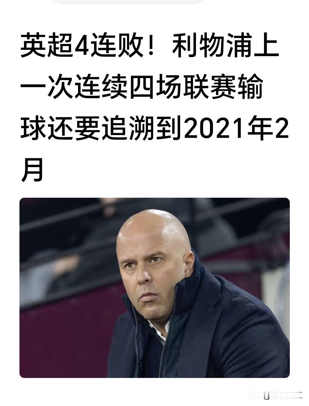 卫冕冠军利物浦新赛季本来一路狂奔,却突然间一个急刹车,翻车了。从联赛5连胜到联赛四连败。联赛进行了9轮,输了4场比赛,按照这样状态,利物浦难以成功卫冕。希望阿森纳抓住机会,本赛季是阿森纳获得英超冠军的最好时机。