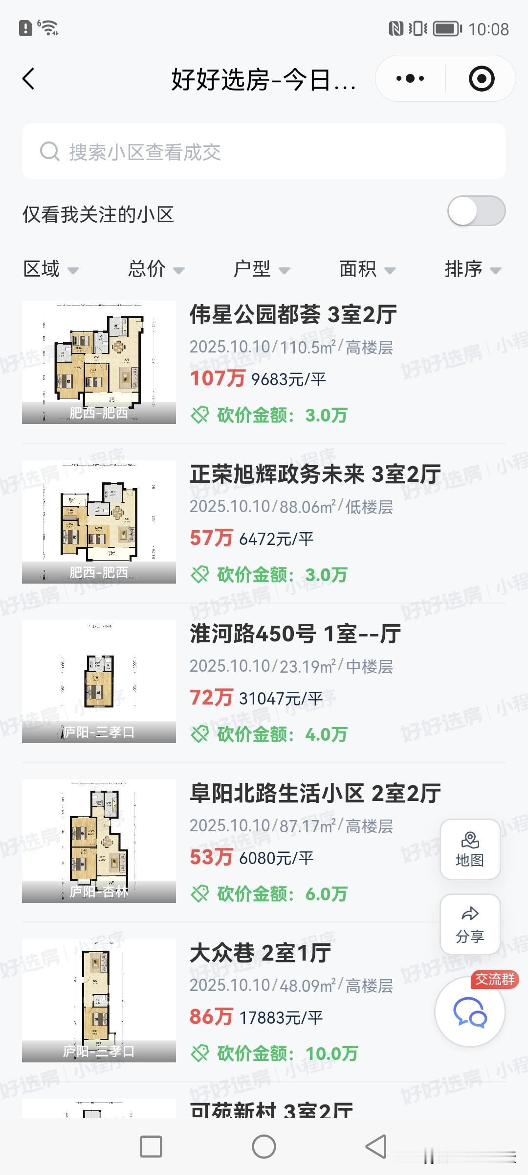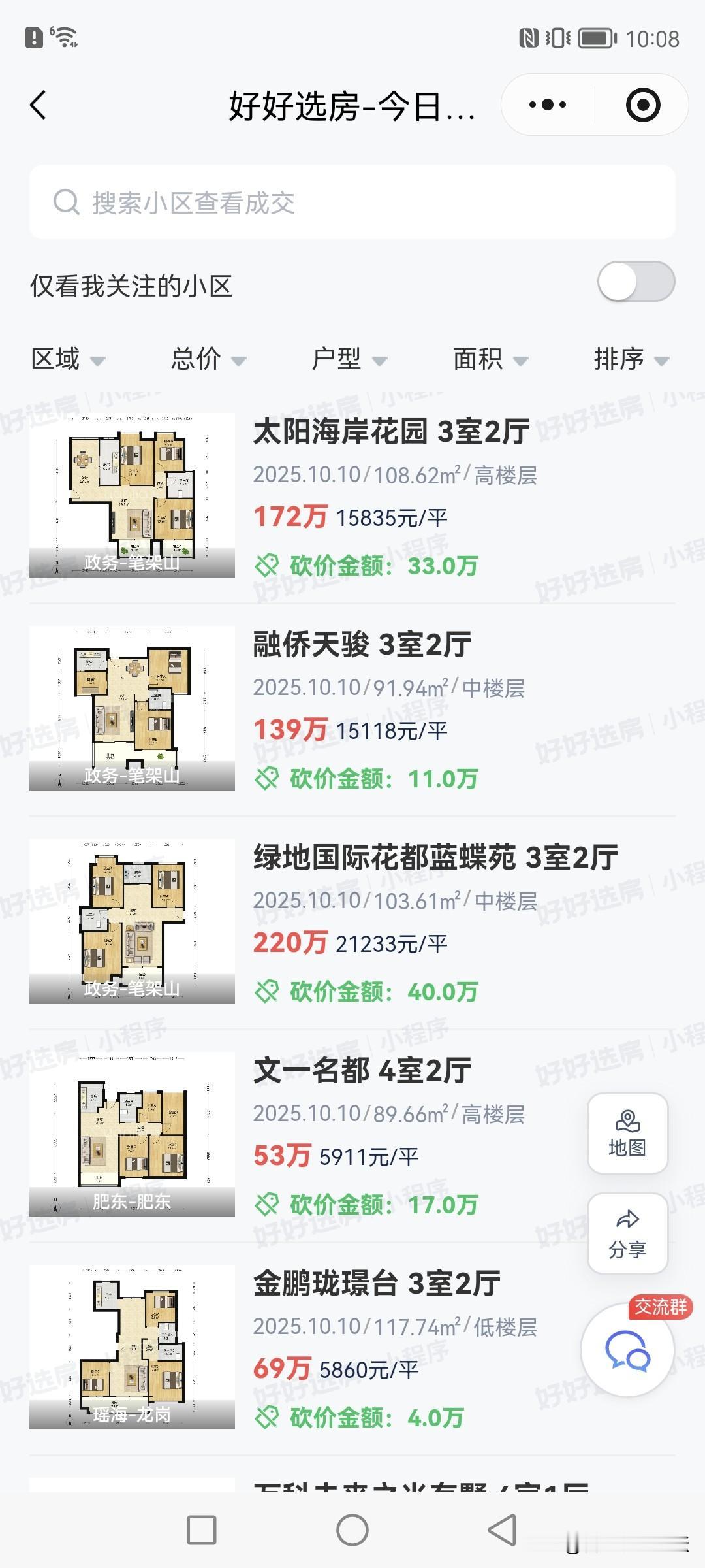合肥二手房市场还是很好的,最新一天部分二手房成交情况。成交量依旧不少,只能说明合肥购房需求的确旺盛,就是看价格的问题。 一百万出头,和一百万以内的房子买的人多。因为这个买了风险个压力都比较小。很多跟租房一样。