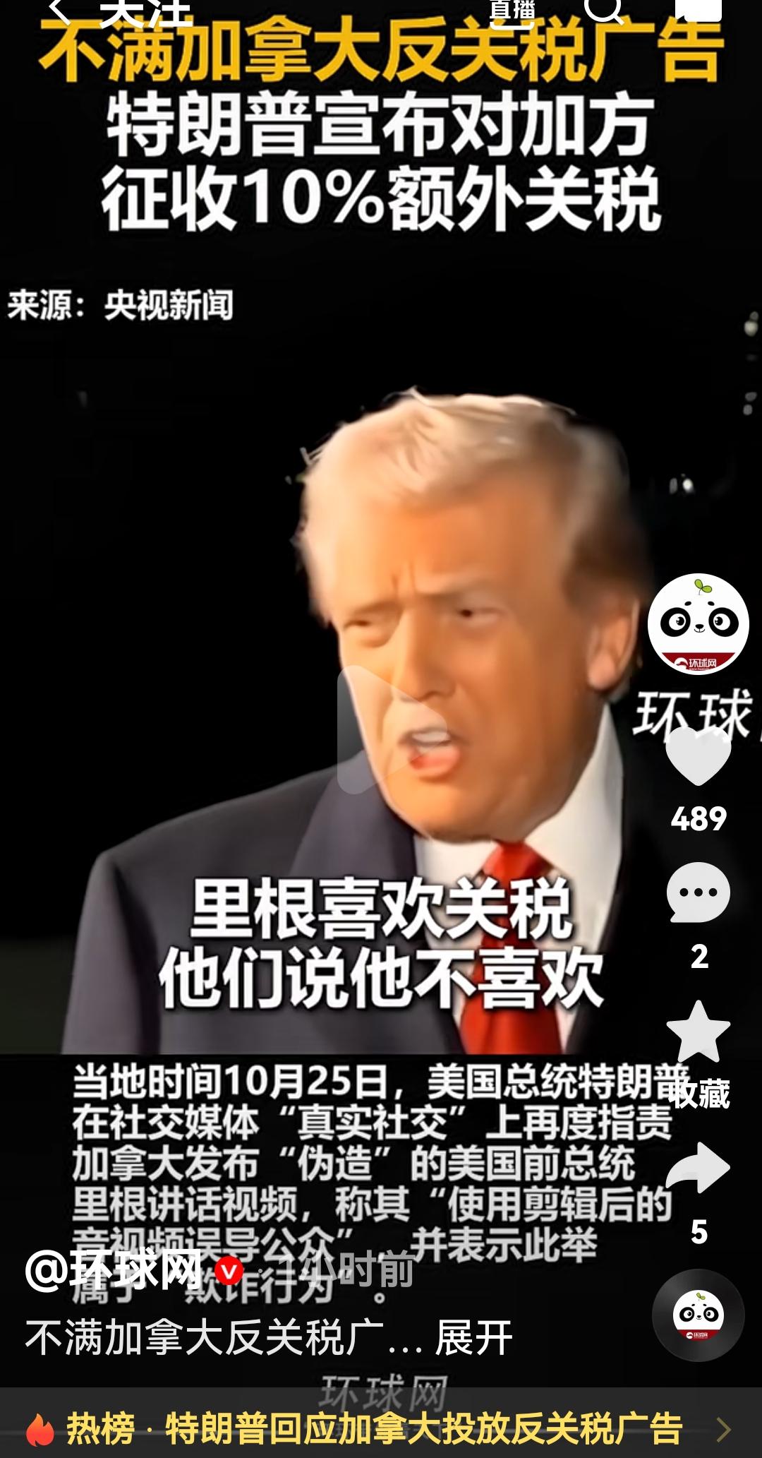 特朗普宣布对加拿大征收10%额外关税 根据美国媒体报道,特朗普在真实社交媒体发布由于加拿大伪造前美国总统里根讲话误导公众他非常不满意 里根基金会也说加拿大没有获得授权或者编辑使用里根总统讲话,基金会正在采取法律途径 特朗普说加拿大是通过虚假宣传影响美国最高法对关税的裁决 真的没想到特朗普和加拿大闹掰,特朗普第一任期可是加拿大一直帮着他干一些肮脏的事,现在加拿大这样下场也活该美国要避免崩溃真的需要大面积降息吗 加拿大为何寻求建立对华战略关系 图片来自环球网视频