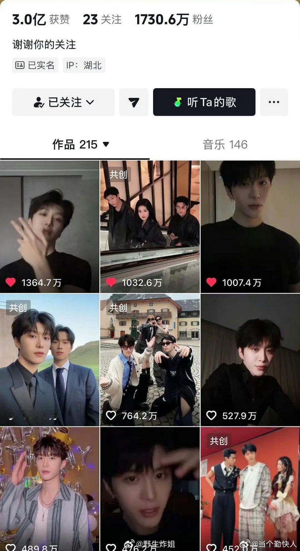 范丞丞在抖上破千万的视频好几条,其他也是动辄好几百万点赞,连转发都以百万计,这是明星里抖单人数据最好的吧[哆啦A梦吃惊]