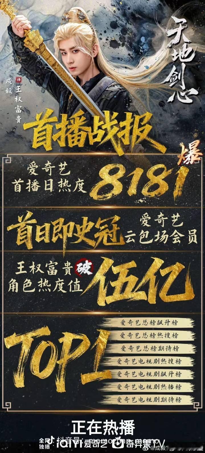 微指破亿意味着该剧单日话题讨论量突破亿级门槛,直接反映成毅作为主演的流量转化能力。对比行业基准,古装剧微指破5000万已属爆款,而破亿数据堪称“核爆级”热度。💚💚💚💚💚💚💚💚💚💚💚