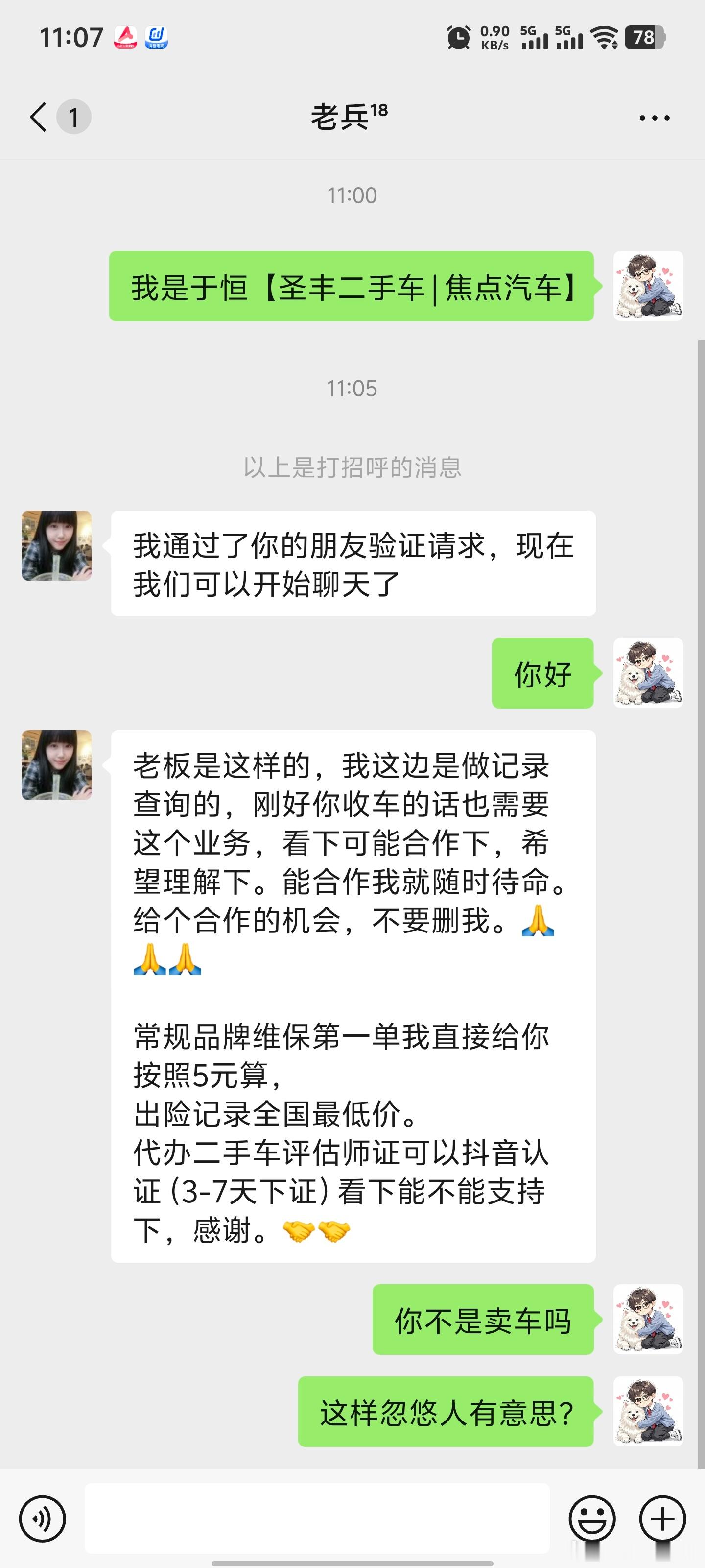 对这些查记录的也很无语,总说有车要卖或者是要看车,骗加v