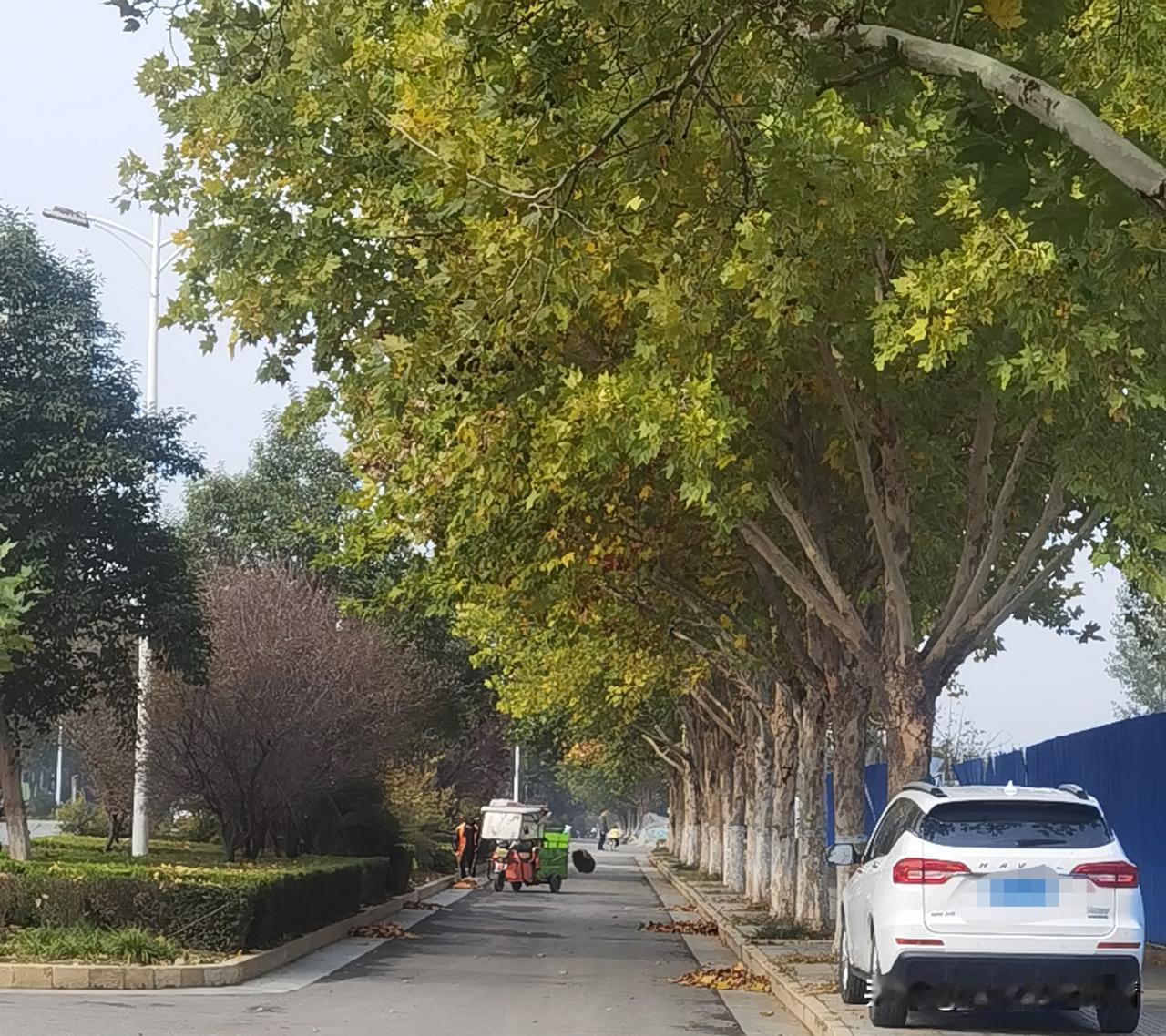 走在这条路上,看着这秋天的树叶黄绿黄绿的,还挺有氛围感的。风一吹树叶落了一地,环卫师傅开着小三轮在打扫落叶,挺辛苦的。两边的树长得可茂盛了,把路遮得挺阴凉。远处还有人在散步,这天气出来走走路还挺舒服的。