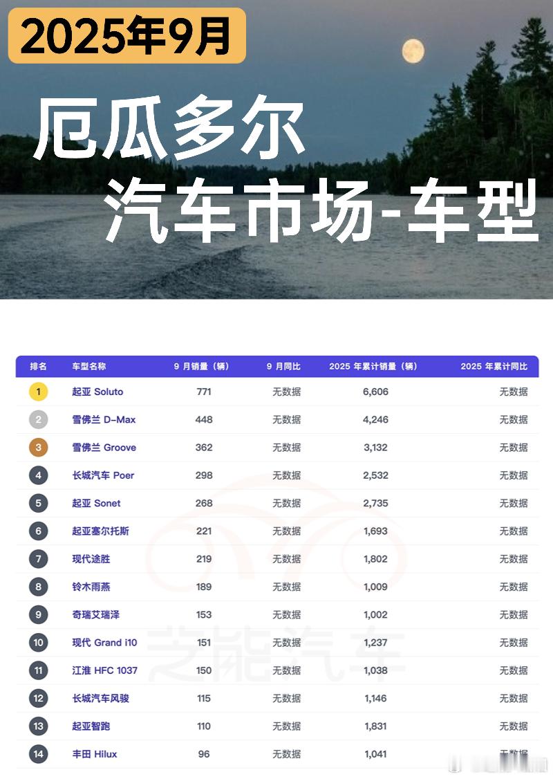 韩系品牌仍居主导,起亚稳居榜首,现代表现亮眼。中国品牌崛起势头迅猛,奇瑞、长城、比亚迪等多款品牌销量大增,涵盖轿车、皮卡及新能源车型,市场份额可观,部分车型跻身销量前十,正重塑当地市场竞争格局。