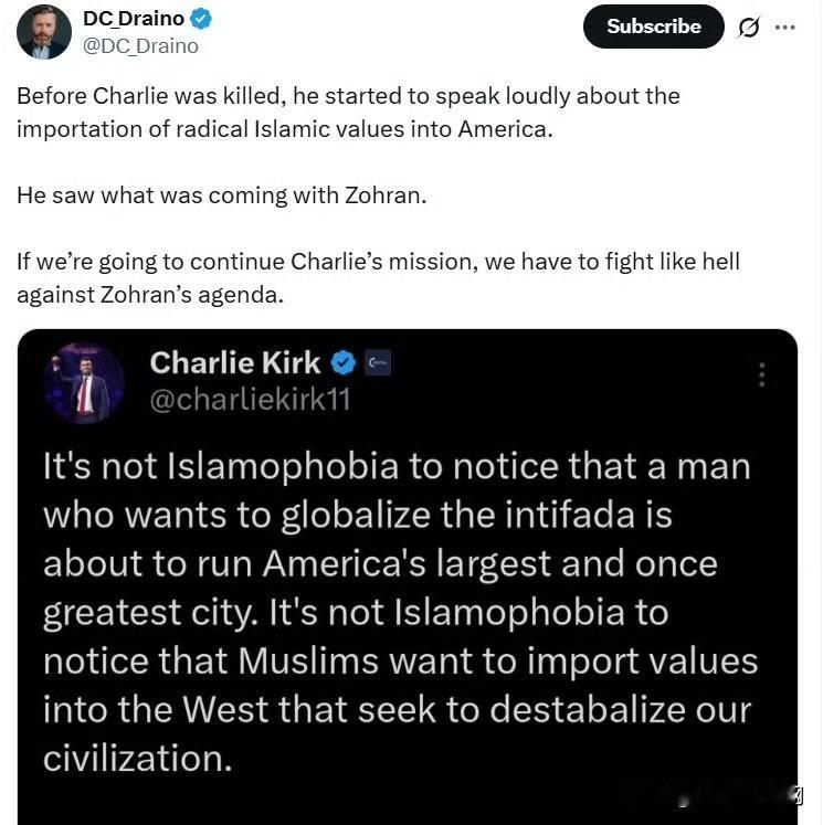 罗根·奥汉德利: 在查理被杀之前,他开始大声谴责激进伊斯兰价值观被引入美国。 他预见到了佐兰身上正在发生的事情。 如果我们要延续查理的使命,就必须全力抗击佐兰的议程。