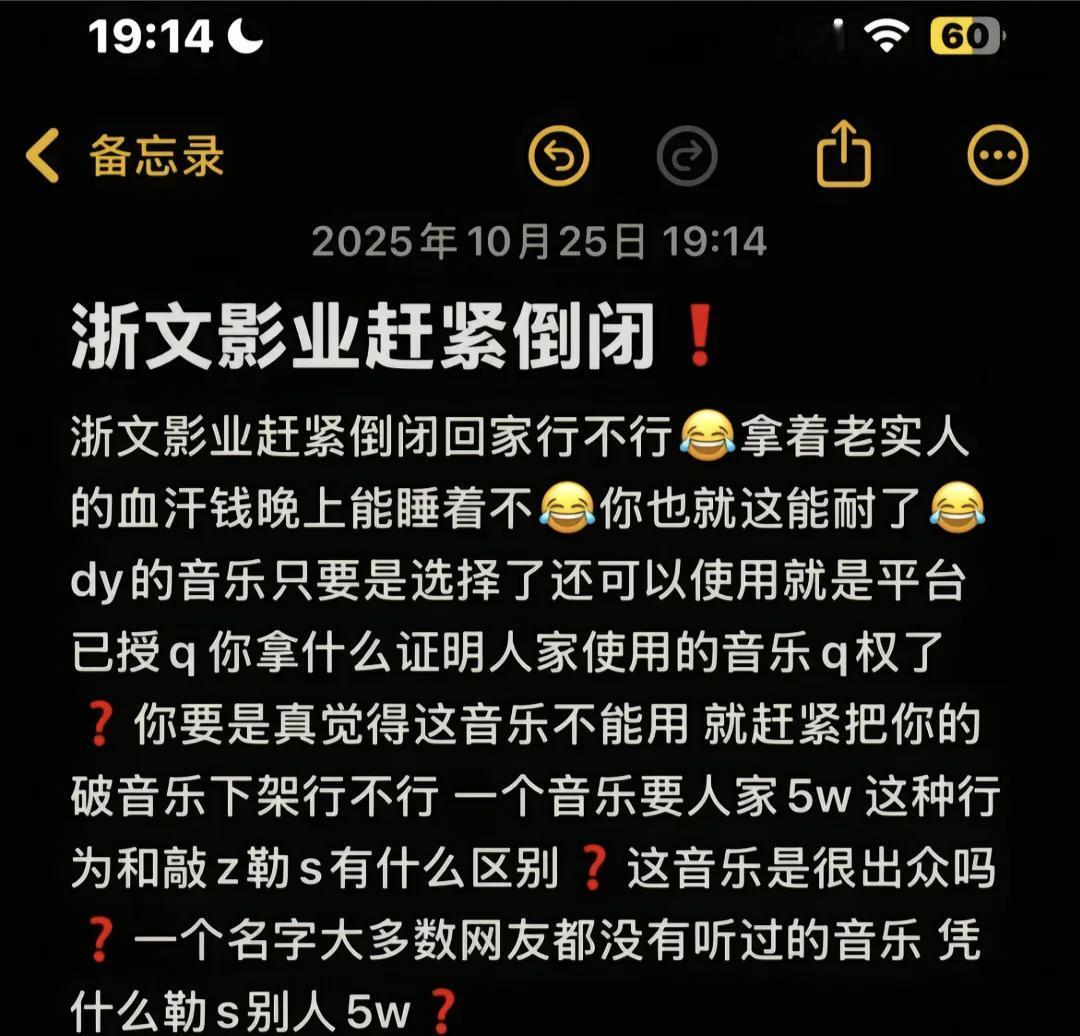 浙文影业只因为老爷爷用了个背景音乐,被索赔5万块。 拍视频的是他的侄子,用的只是一段BGM,没想到却被浙文影业盯上了,要老人家赔偿5万块的版权费。 网络发酵之后,依然没有饶过这个身有残疾的老爷爷,最后要了2000块才了事。 老爷爷每天可能也就整个几十块,2000块就相当于他几个月的收入了。 浙文影业还真是丧良心,要版权费可以,但总不能盯着那些没啥收入又艰难的普通人吧,别人又是拿去商业演唱,何必要如此咄咄逼人呢。这样没良心的公司。还是快点倒闭吧!