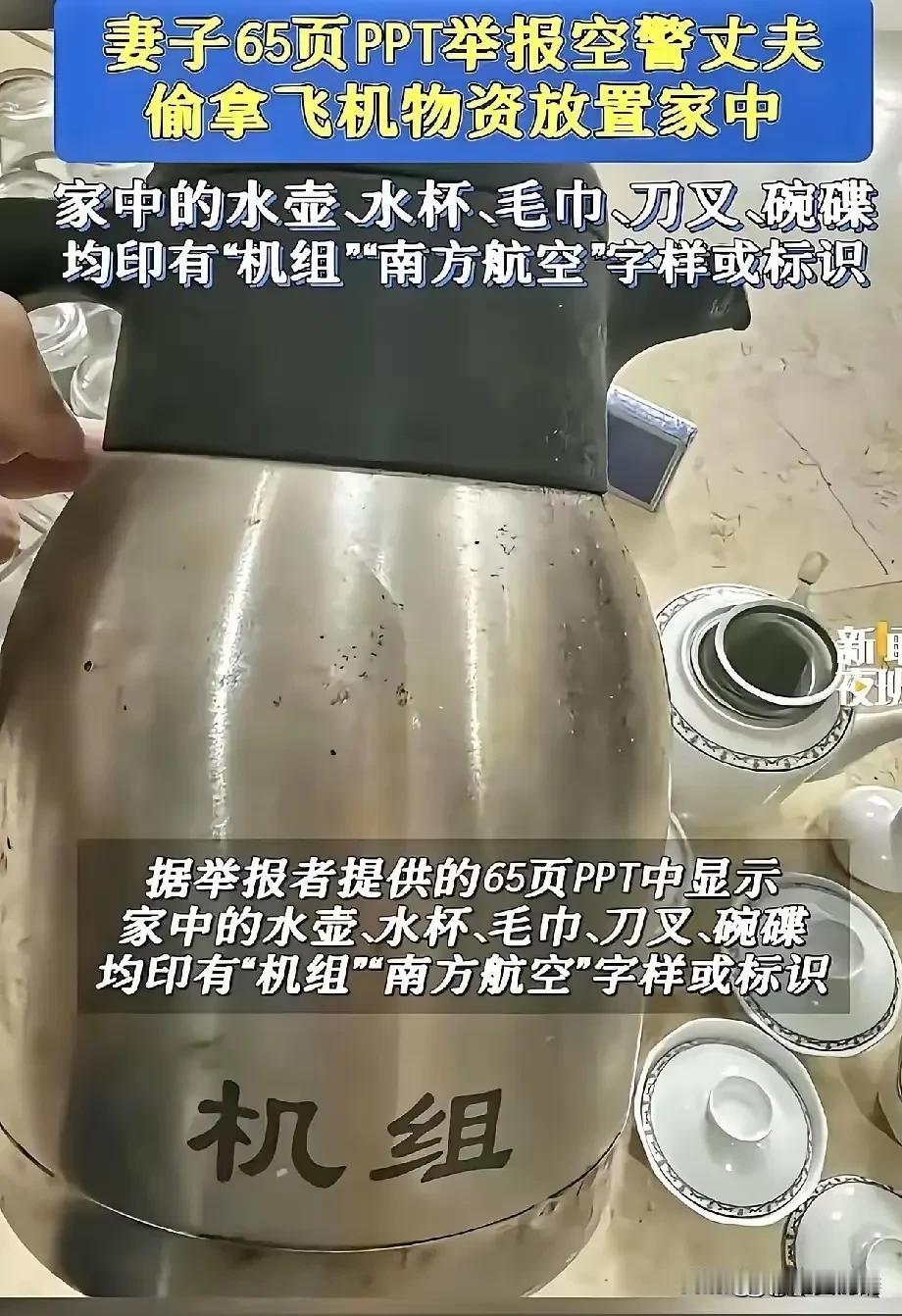南航领导看完65页PPT,神色凝重地得出结论: 公司报废的水壶,字都磨没了他还带回家用,这份节俭和务实真是难得,妥妥的被忽略的好同志,以后有提拔机会得想着他。 领导找他谈话一个小时,前十分钟开玩笑,四十分钟劝他离婚,还安排法务给他谈离婚,争取家里的财产分割,剩下五分钟鼓励了一下要继续干。 最还建议这位员工从报废的物品中挑一些新的回来用,以免被网友嘲笑。 不过话说,这老婆也是身在福中不知福,这种勤俭持家的老公哪里去找??这也算是偷鸡不成蚀把米,原本想去单位抹黑老公的,没想到狠狠的在领导面前刷了一把好感!! 对此,你有什么看法,欢迎在评论区讨论