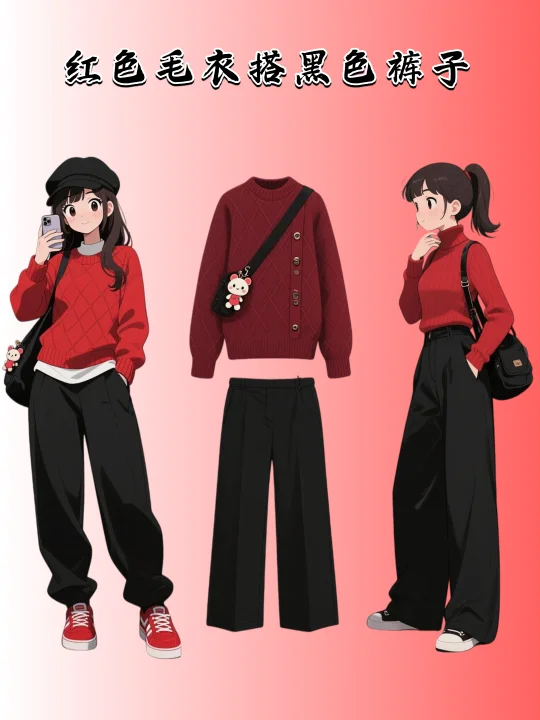 搭配黑色裤子,经典又大气,不管是麻花毛衣还是设计感收腰款,配黑色阔腿裤或微喇裤,上班通勤、约会逛街都能hold住,气场直接拉满~