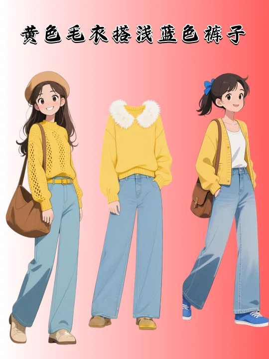 黄色自带活力buff,搭配浅蓝牛仔裤,清新感直接拉满!