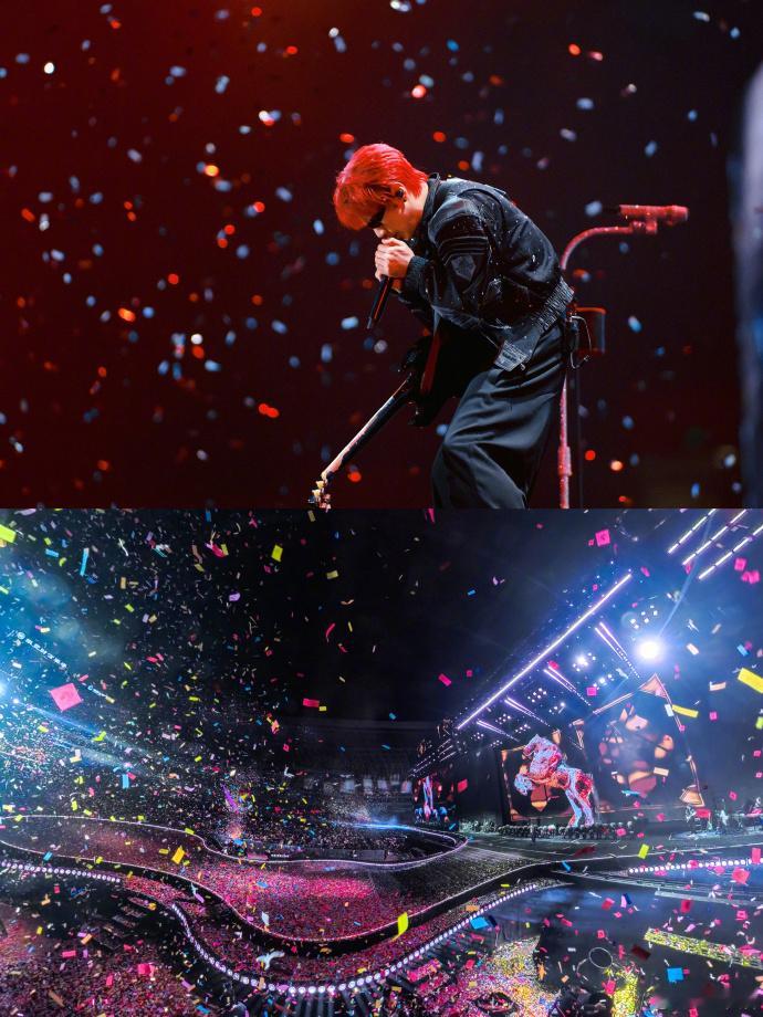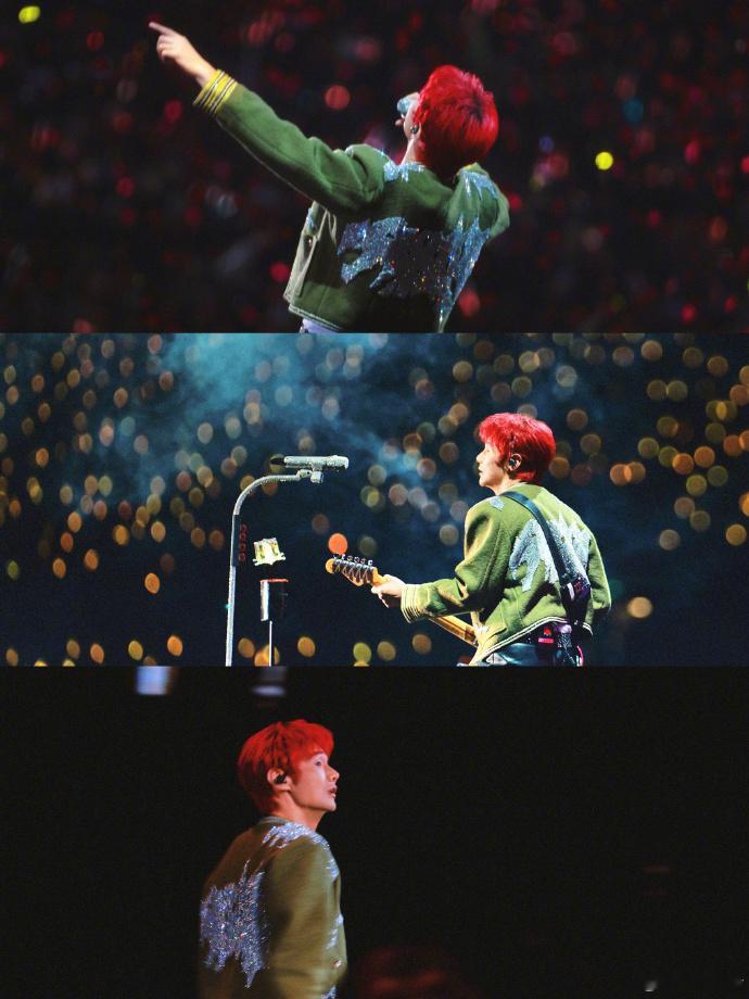 一抬头发现李荣浩跪下了 李荣浩跪地那瞬间,我感觉整个场馆都在发光!他跪着弹吉他的样子像在施展魔法,现在看视频发现连空气里的尘埃都在跳舞,这画面太美了,永远刻在我记忆里!