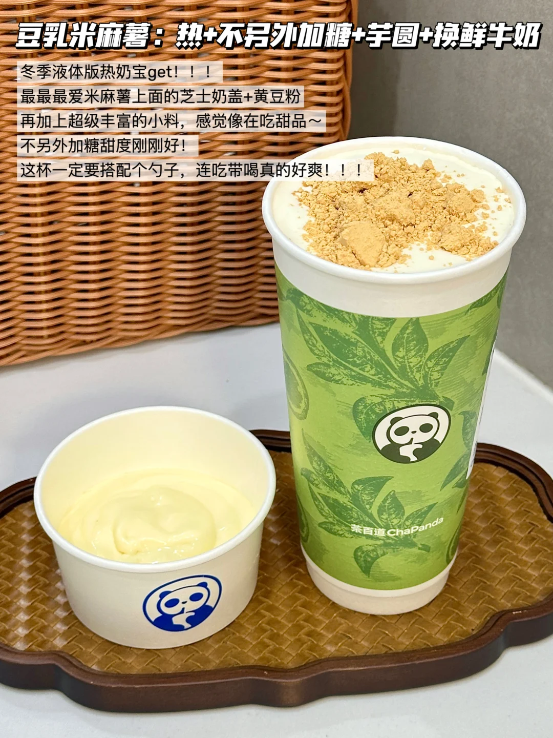 ✅豆乳米麻薯:热+不另外加糖+芋圆+换鲜牛奶