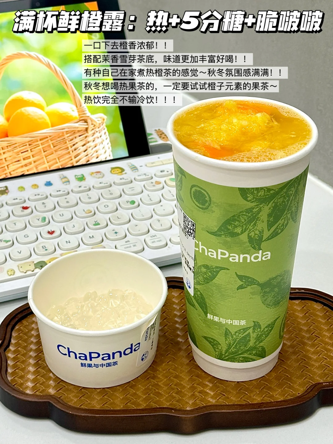 ✅满杯鲜橙露:热+5分糖+脆啵啵