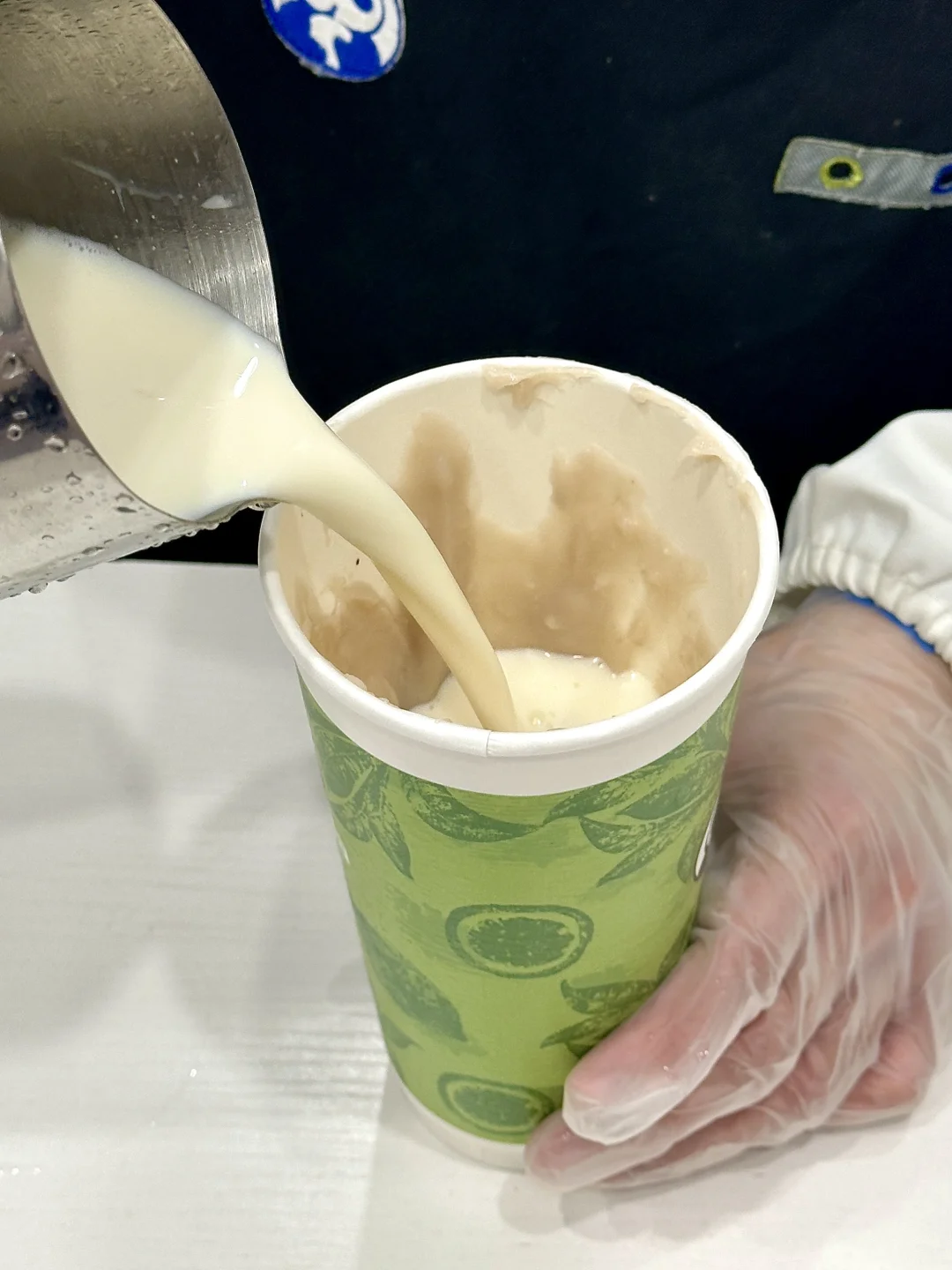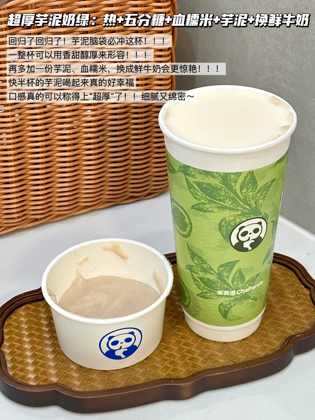 ✅超厚芋泥奶绿:热+五分糖+血糯米+芋泥+换鲜牛奶