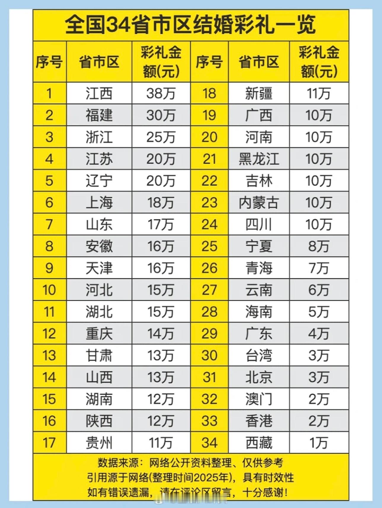 18万彩礼被扣下女儿起诉爸妈全国34省市区结婚彩礼一览,江西最高[思考]