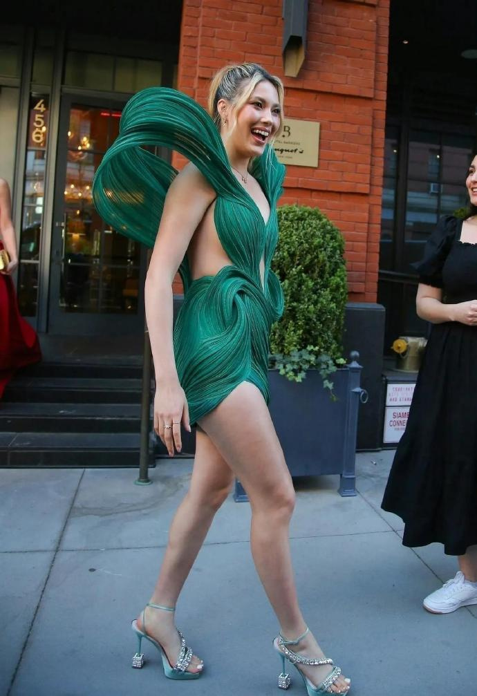 张天爱跟素人合影,胯真的好宽,大宅院似的