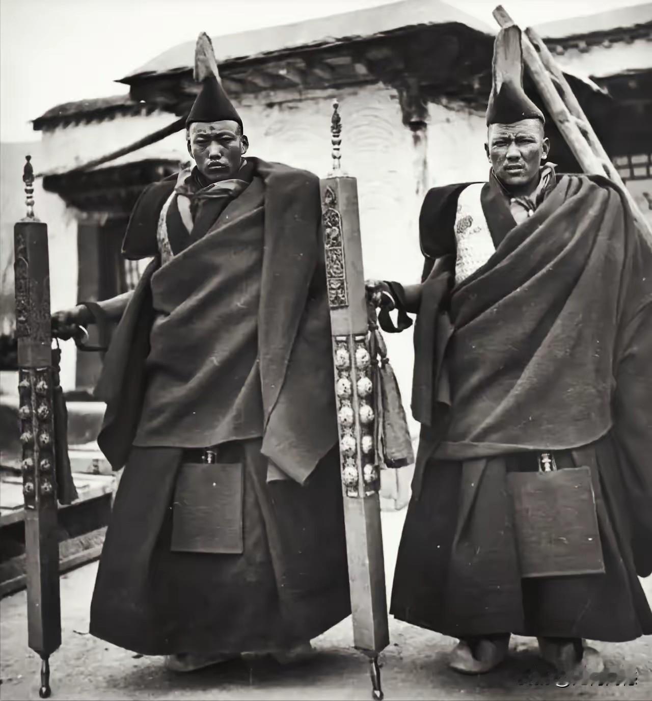 这两个僧人拿的是什么东西,从来没有看过,这也应该是一种法器,看这两个僧人的身体素质,也是非常彪悍的,他们应该承担着特殊的职责,他们手里拿的这个东西有一定的震慑力!