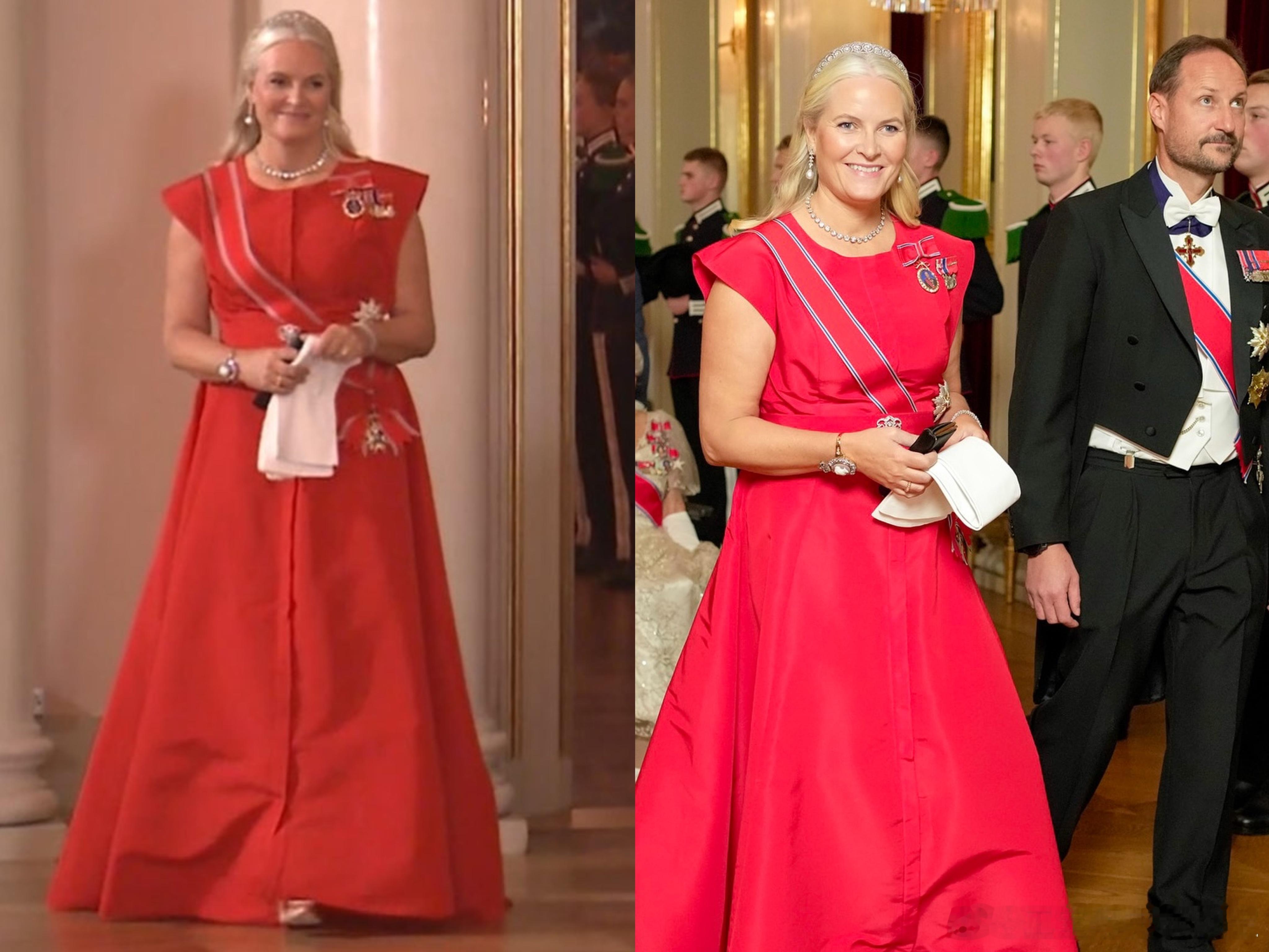 你究竟有多爱这件衣服 上周四,挪威王储妃梅特新穿Carolina Herrera的漆红色缎面短袖礼服,跟丹麦王后去年出席北欧驻德国大使馆成立25周年庆祝晚宴时穿的是同款,礼服采用米多卡真丝制成,礼服的大裙摆和配有腰部系带凸显身材曲线,两侧还配有口袋方便插兜耍帅,该礼服原售价4290美元,在NET-A-Porter上半价出售(目前已售空)。