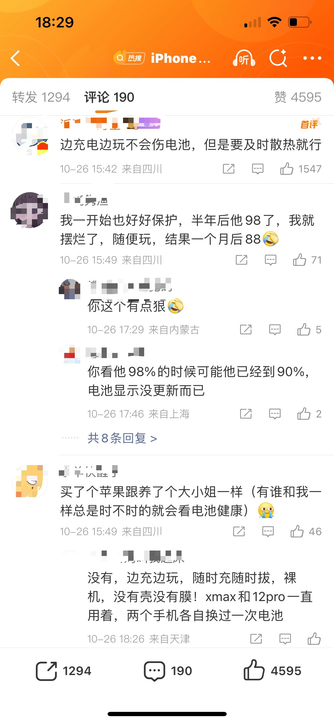 没有几个人能做到不边用手机边充电吧[思考],感觉能做到不用劣质充电器就可以了,你们会特别在意电池情况嘛?