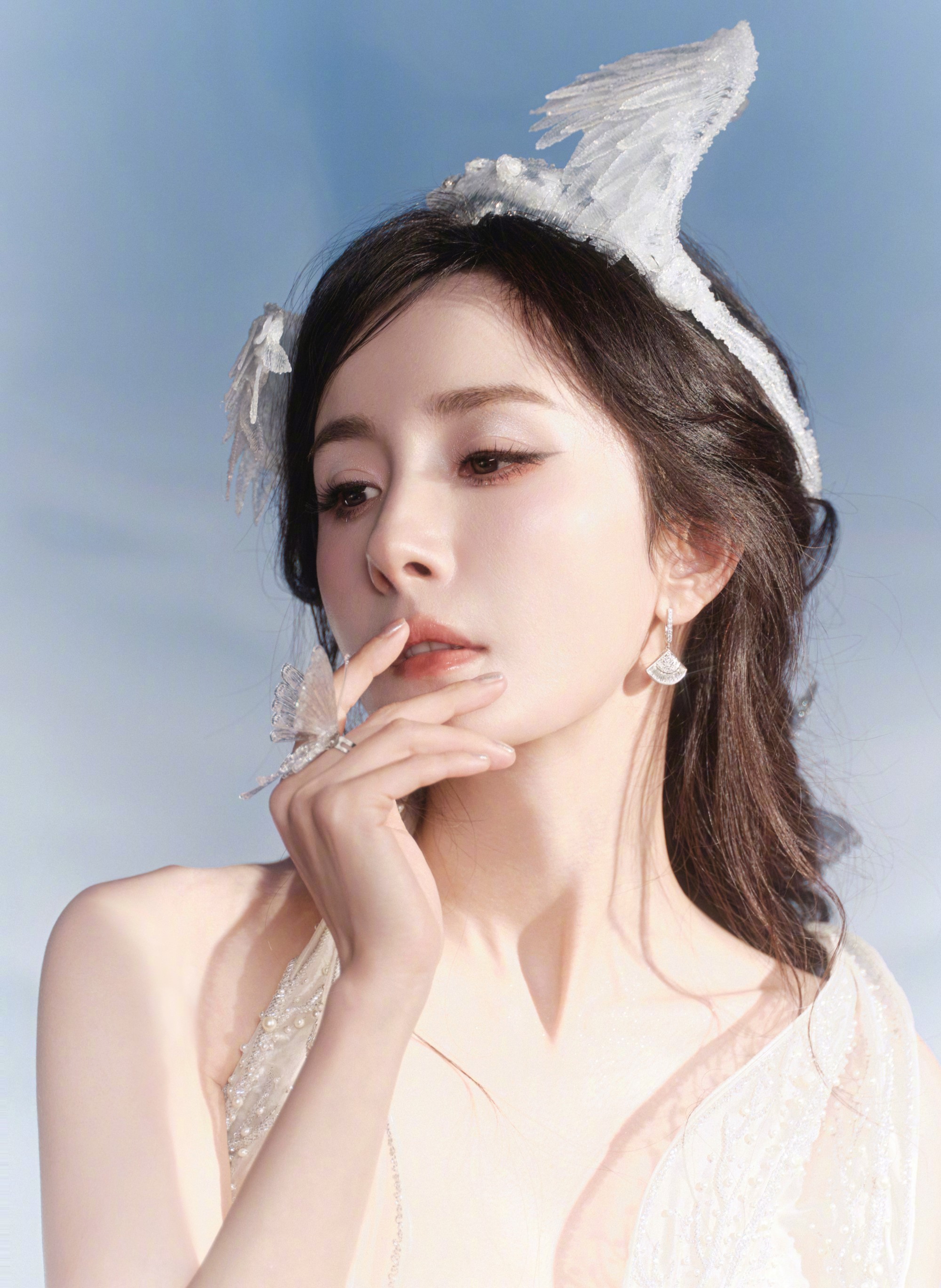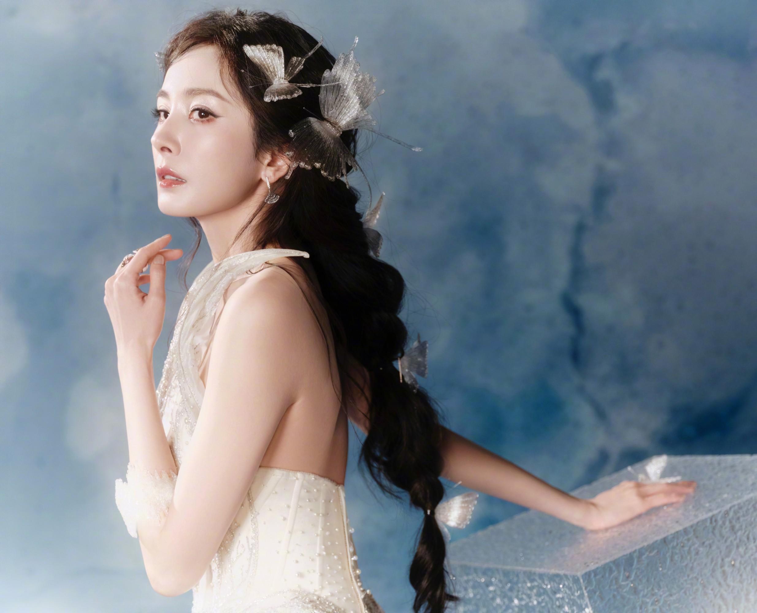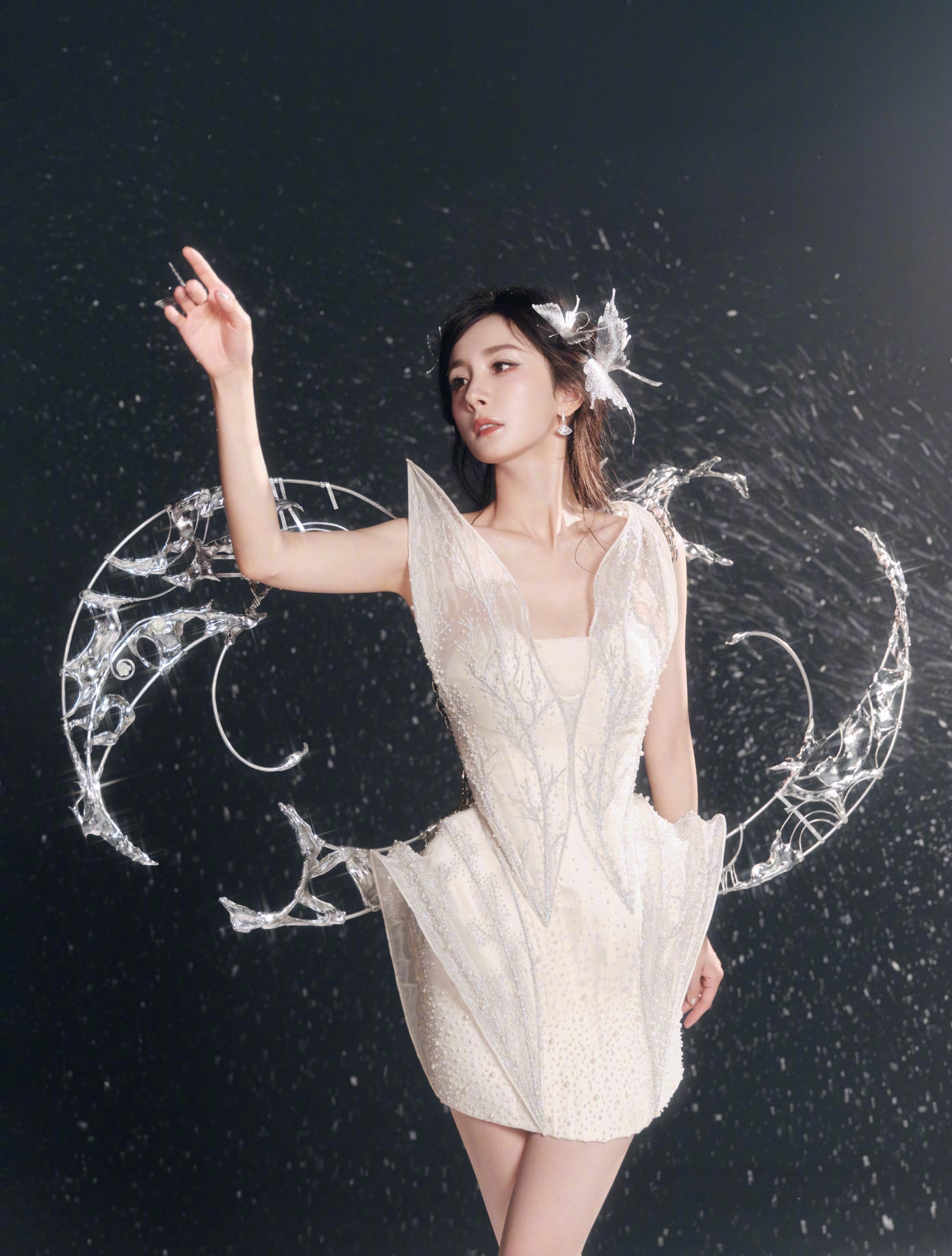 杨幂以“荣耀王者代言人”身份出席王者荣耀2025共创之夜活动,身穿Rahul Mishra 2025秋冬高定白色短裙,搭配水晶弓箭道具