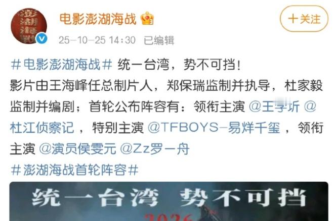 电影《澎湖海战》第一波官宣,没有阿拉丽[doge]