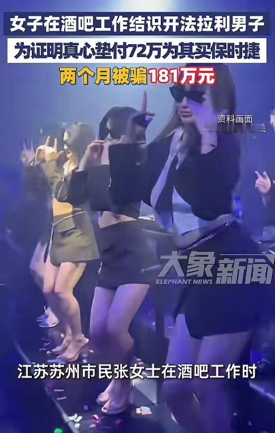 “被白嫖了!”女子在酒吧工作结识开法拉利的富豪,为了证明真心,花72万给男子买保时捷,结果两个月被骗了181万,男子收到钱后直接人间蒸发。网友:某些女人的爱情观只有骗子才符合。 江苏苏州的张女士是在酒吧工作的,在工作时认识了自称酒吧老板的邹某,看着邹某每天开着法拉利来酒吧消费,迅速坠入了爱河,在张女士的追求下,两人迅速走到了一起。 确定关系后,邹某也给张女士买了一些礼物,张女士觉得自己遇见了真命天子对邹某言听计从,眼看时机到了,邹某就开始管张女士要钱了,一开始先以银行卡被冻结等名义要一点小钱,后面狮子大开口,以考验真心为要求,要张女士垫付72万,给自己买保时捷。 不愿意放弃金龟婿的张女士,毫无防备的就把钱给了邹某,两个月内陆陆续续给邹某花了181万,本以为今后两个人能走到一起,没想到要到钱后,邹某直接人间蒸发了,活不见人死不见尸。 张女士这才知道自己被骗了,赶忙打电话报警,警方一查发现,邹某骗的不止张女士一个人,还曾在多个省用相同的手法骗了不少人,很快警方边控制了邹某,法院判处邹某有期徒刑11年,处罚金10万,并责令退还张女士被骗的全部赃款。 说实话,张女士被骗一点都怨不了别人,因为她自己都不干净,在看到邹某法拉利的那一刻就认准了这个金龟婿,本想嫁入豪门从此过上富太太的生活,没想到却被骗的裤衩子都没有了。 老话说偷鸡不成蚀把米,这话放到张女士跟邹某身上一点不假,倘若能塌下心来,找个正经工作,不好高骛远找个情投意合的人一起过日子,生活也不会差,可就是被贪心给害了。 最后送给张女士一句话,有多大屁股穿多大裤衩,想嫁入豪门之前,先照照镜子看自己够不够资格。 素材来源:大象新闻