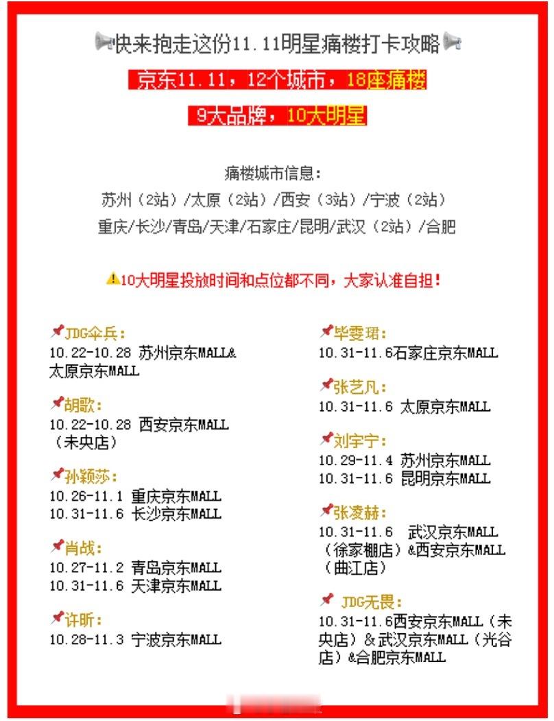京东 11.11 明星痛楼天花板 直接解决你的烦恼!10 位不同风格的明星都在,18 个线下痛楼分布超广,不管你粉的是元气爱豆还是飒爽艺人,大概率能找到你的本命!