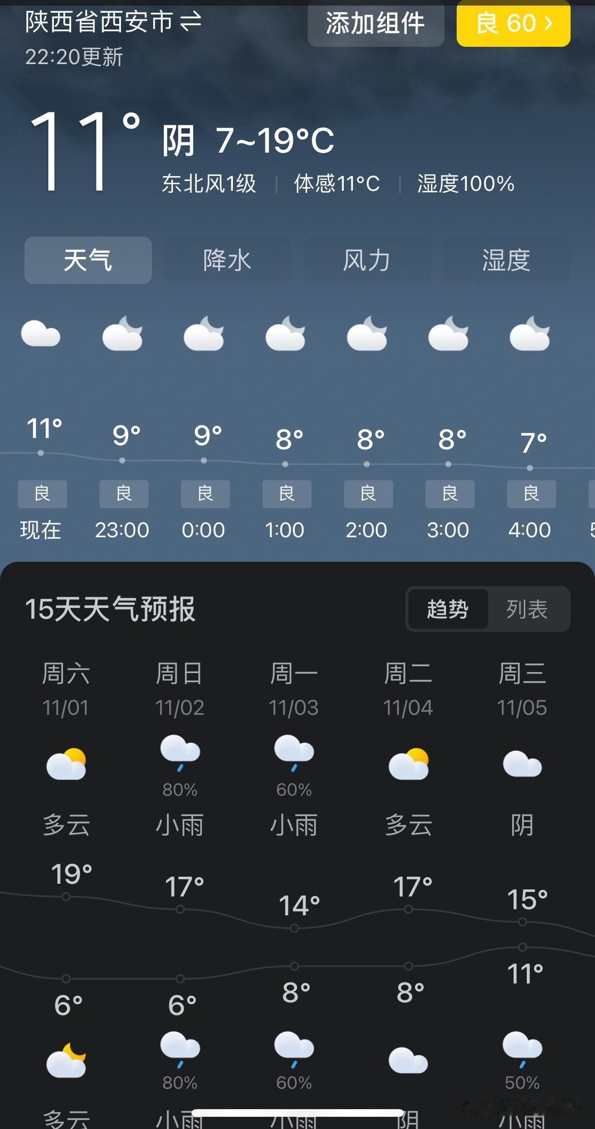 西安连续两个月的降雨天气终于 结束了, 未来7天将以多云天气为主, 气温也将短暂回升, 下周四到下周五也就是 10月30日到10月31日最高气温 攀升至20度,往常10月份是 西安一年中最舒服的季节, 秋高气爽,今年的连续降雨给 生产生活造成了很多麻烦, 历史罕见。