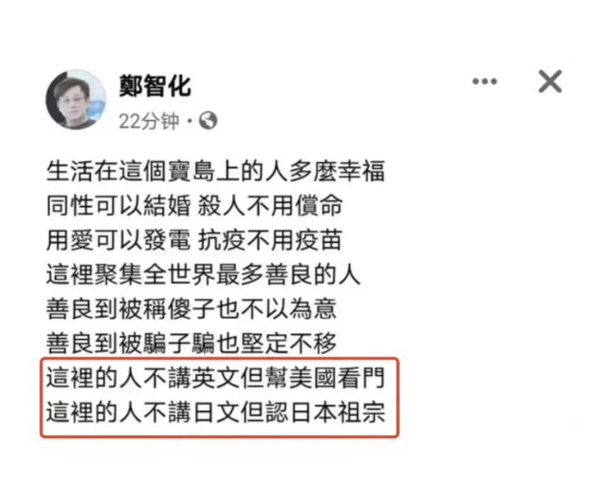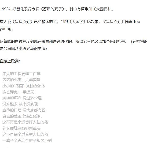 其实郑智化并不是什么蛙蛙,他的立场原本算得上非常进步的,曾多次公开批评岛内对大陆的偏见。平时立场还挺偏左,不知这次为啥发癫完全抛弃了斗争的技巧。郑智化连滚带爬进飞机郑智化 深圳机场