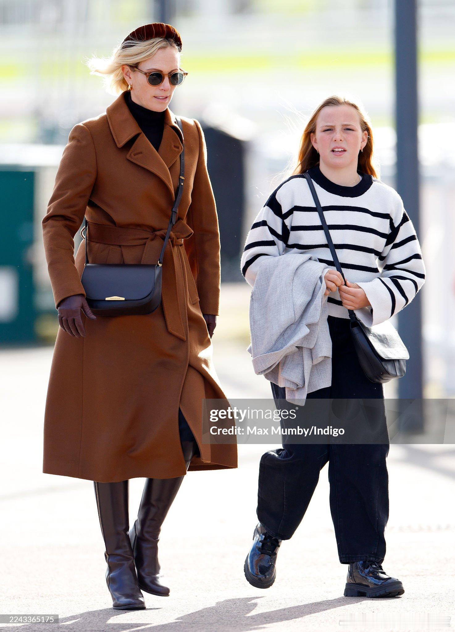 新闻 2025.10.25 英国安妮长公主的女儿扎拉·廷德尔和长女米娅在切尔滕纳姆赛马场出席威廉希尔赛马展示会活动,米娅是亲爹2.0啊,扎拉的焦糖色大衣来自Hobbs。 ​​​