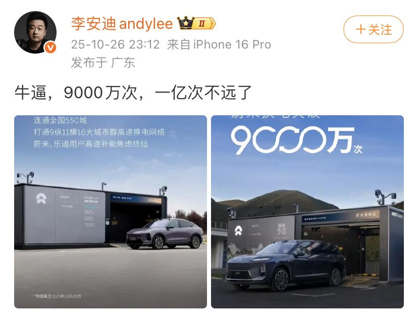 蔚来完成第9,000万次换电! 这个数据是由蔚来和乐道两个品牌完成的,这两个品牌都是蔚来集团旗下的品牌。 一家公司可以实现这种记录确实是非常的厉害,按照这个成绩计算,那么实现第1亿的换电记录,可能是在明年的1月份。 大家是怎么看的?欢迎评论区留言。