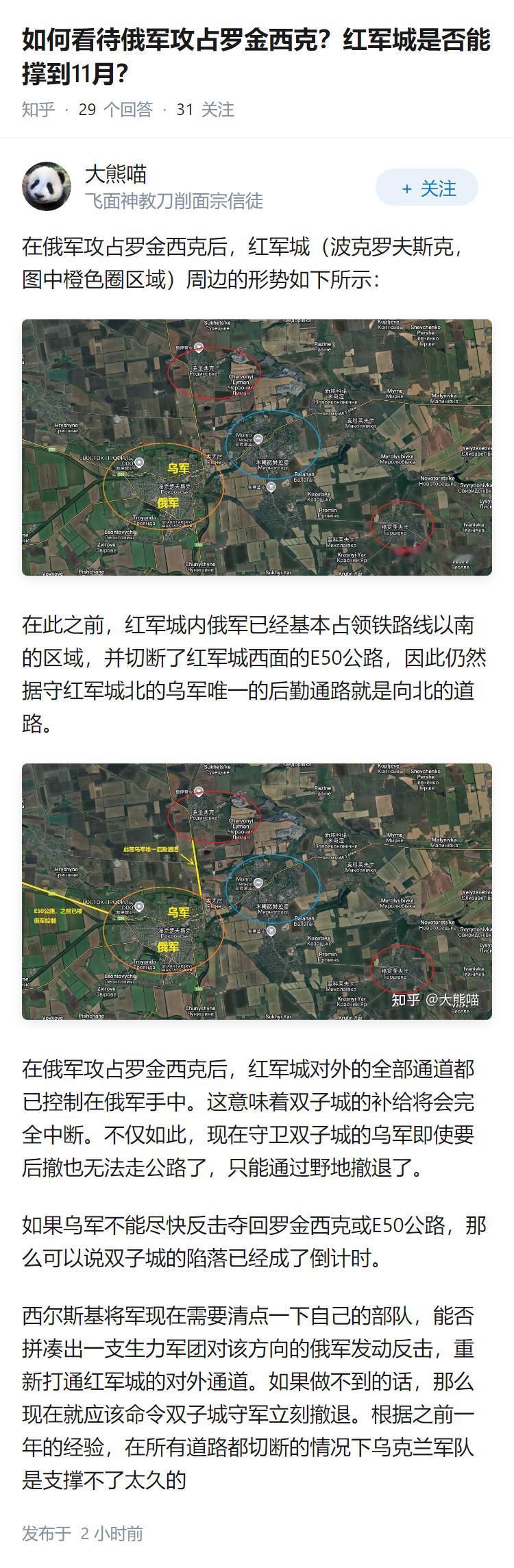 如何看待俄军攻占罗金西克?红军城是否能撑到11月?