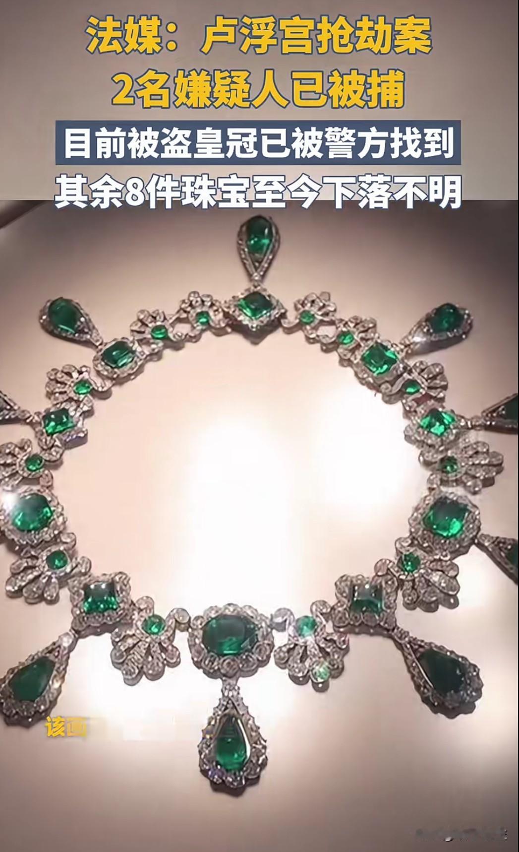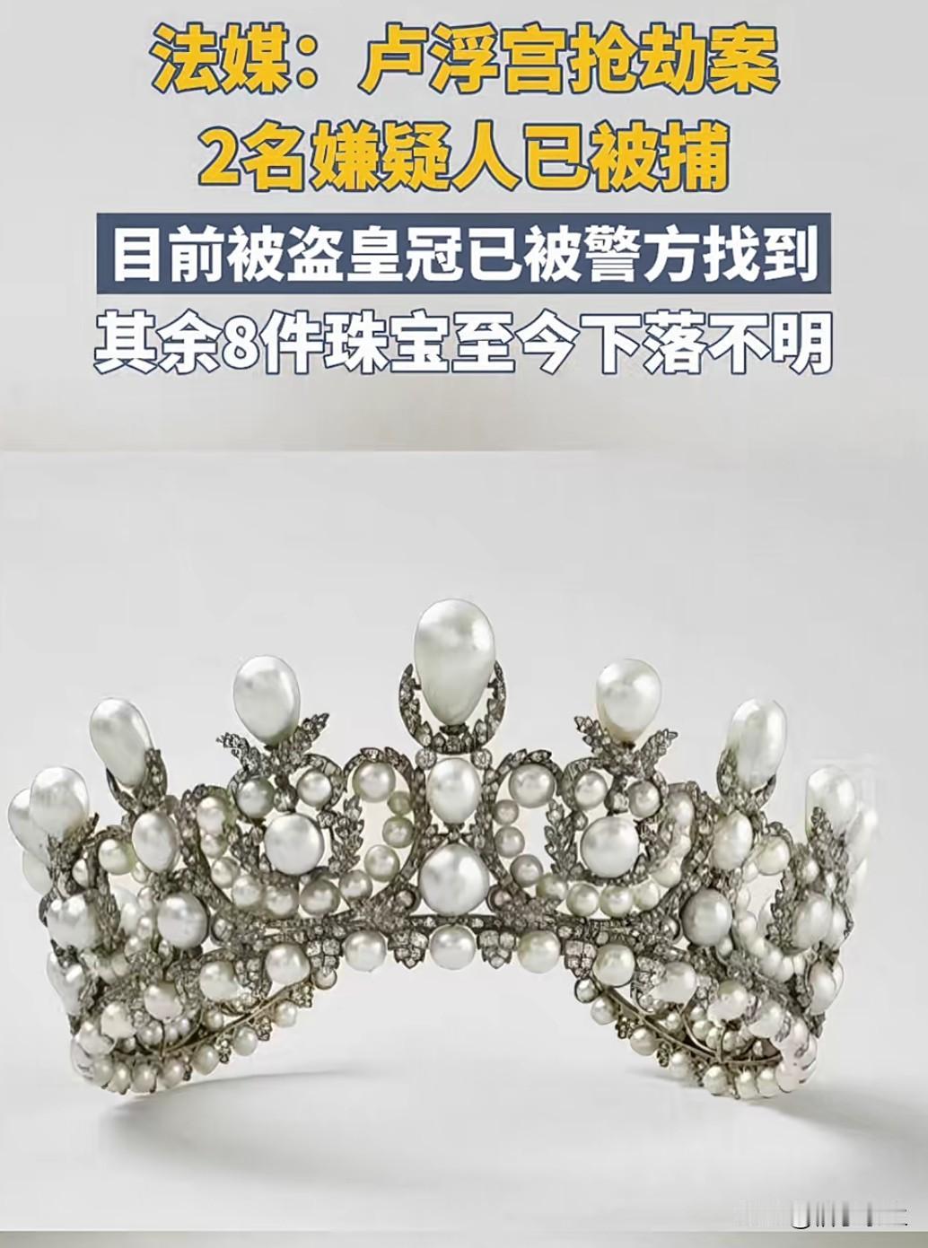 卢浮宫抢劫案两名嫌疑人被捕 多件珠宝仍下落不明 法国警方今日宣布,卢浮宫抢劫案已有两名涉案嫌疑人被捕,但被盗的多件珍贵珠宝仍下落不明。这起发生在上周的盗窃案震惊全球,失窃珠宝价值估计超过1亿欧元。 调查显示,嫌疑人通过精心策划,利用安保系统漏洞实施盗窃。目前,法国警方已成立专项调查组,并向国际刑警组织发出协查请求。