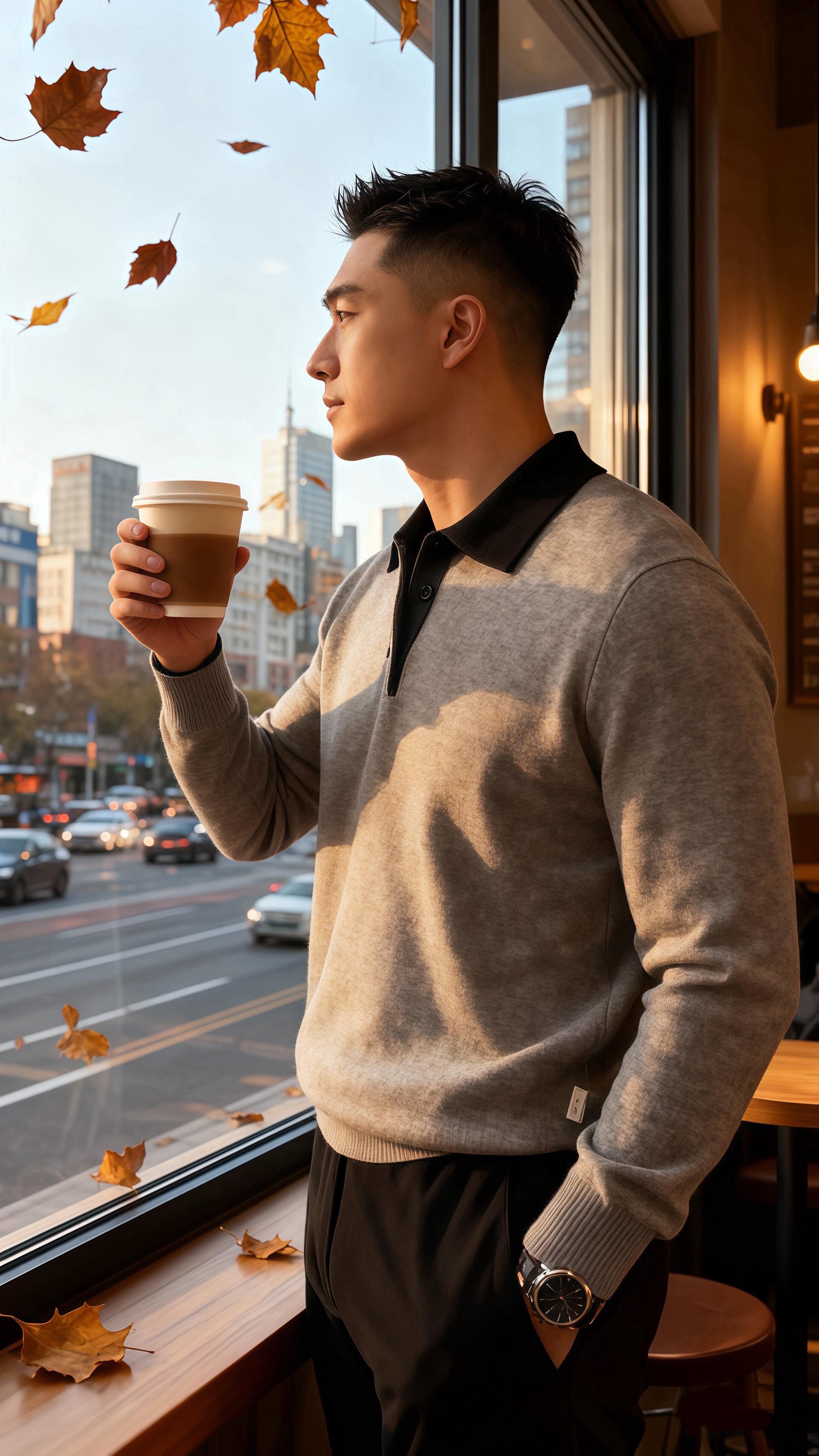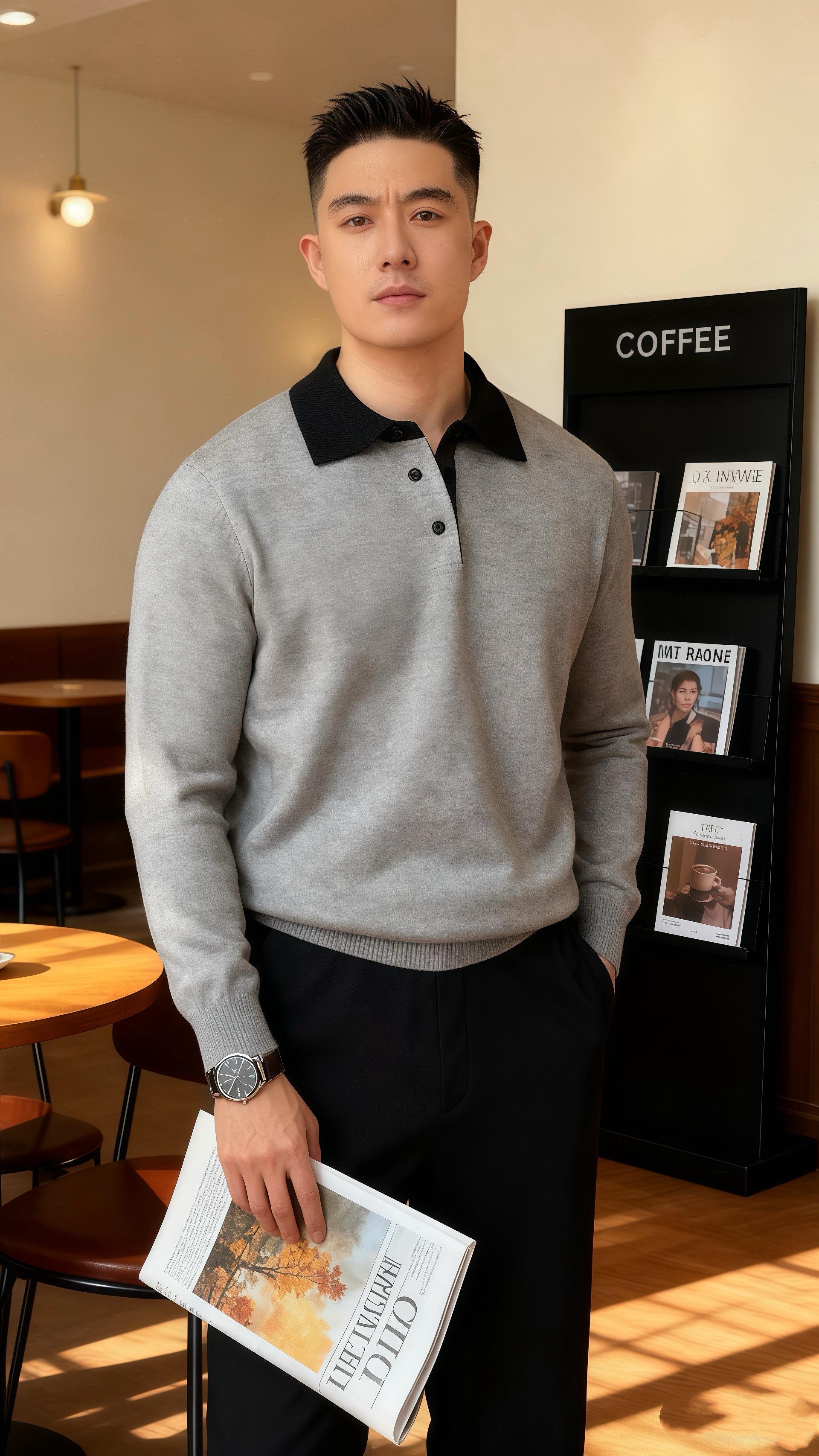 生活的质感,是穿对每一件“恰好”的衣服 秋光落在针织纹理上的时刻,像把日子也揉得柔软。 不是所有选择都要轰轰烈烈——就像这件灰调Polo衫,黑领的利落撞得刚好,松弛感藏在袖口的针脚里。 就像你我走在城市里,不用追着浪潮跑,选一件让自己舒展的衣装,握一杯热饮看落叶,把普通的午后过成独属的风景。 生活从不是等“完美时刻”,是在每一个“刚好合适”里,把日子穿得从容又有光。 你看,风里的落叶在跳舞,而你穿对了今天的答案。
