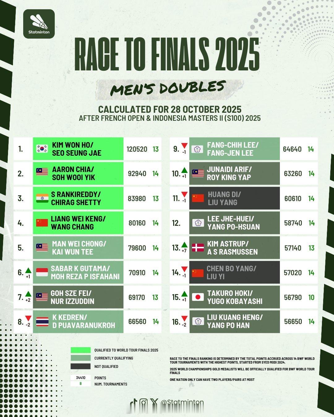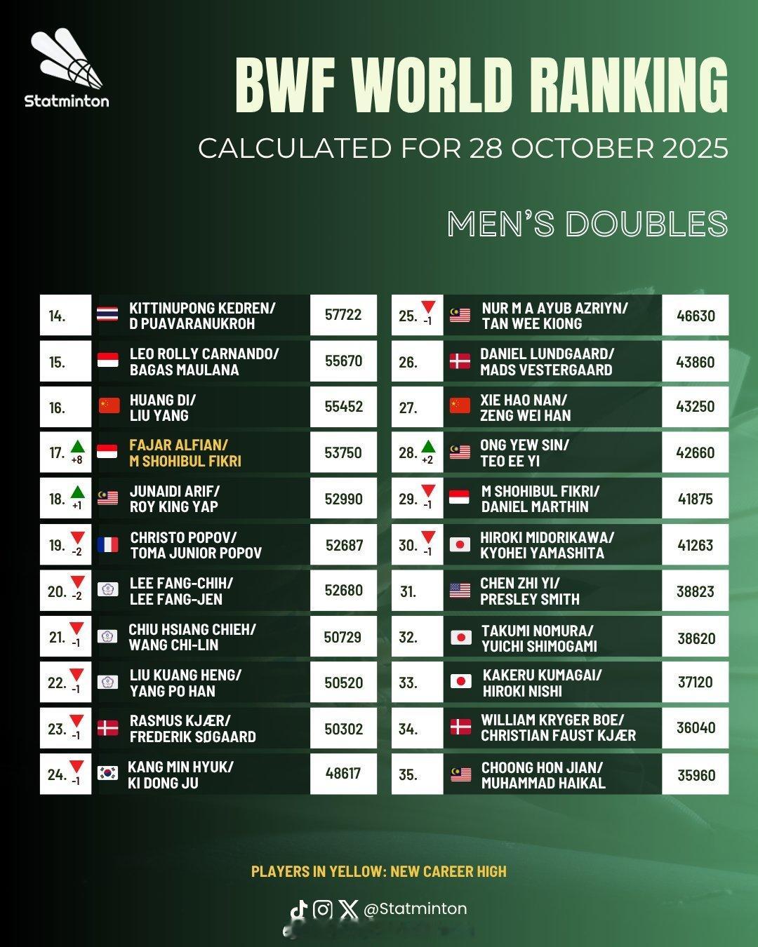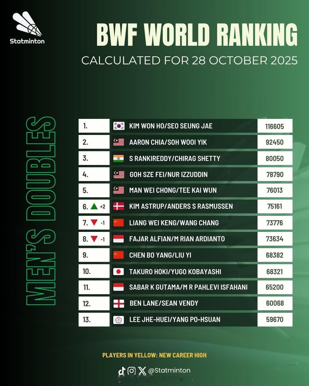 羽毛球🏸【男双】最新世界排名|总决赛积分排名