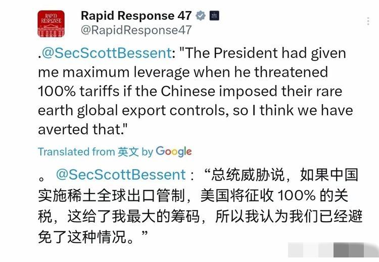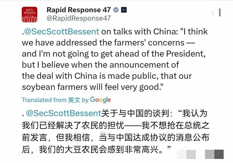 贝森特依旧那么不靠谱,声称:我觉得谈判消解了豆民的担忧,特朗普加征100%关税是他最大的依仗,然而他一句“谈判具有建设性”,让他原形毕露。 虽说美国态度强硬,但中方毫不退让,只能说谈判有了些成效。 在关键领域中方绝不可能妥协,当前是美国急于开启谈判,想尽快解决问题,而我们并不着急。 对此你作何看法?