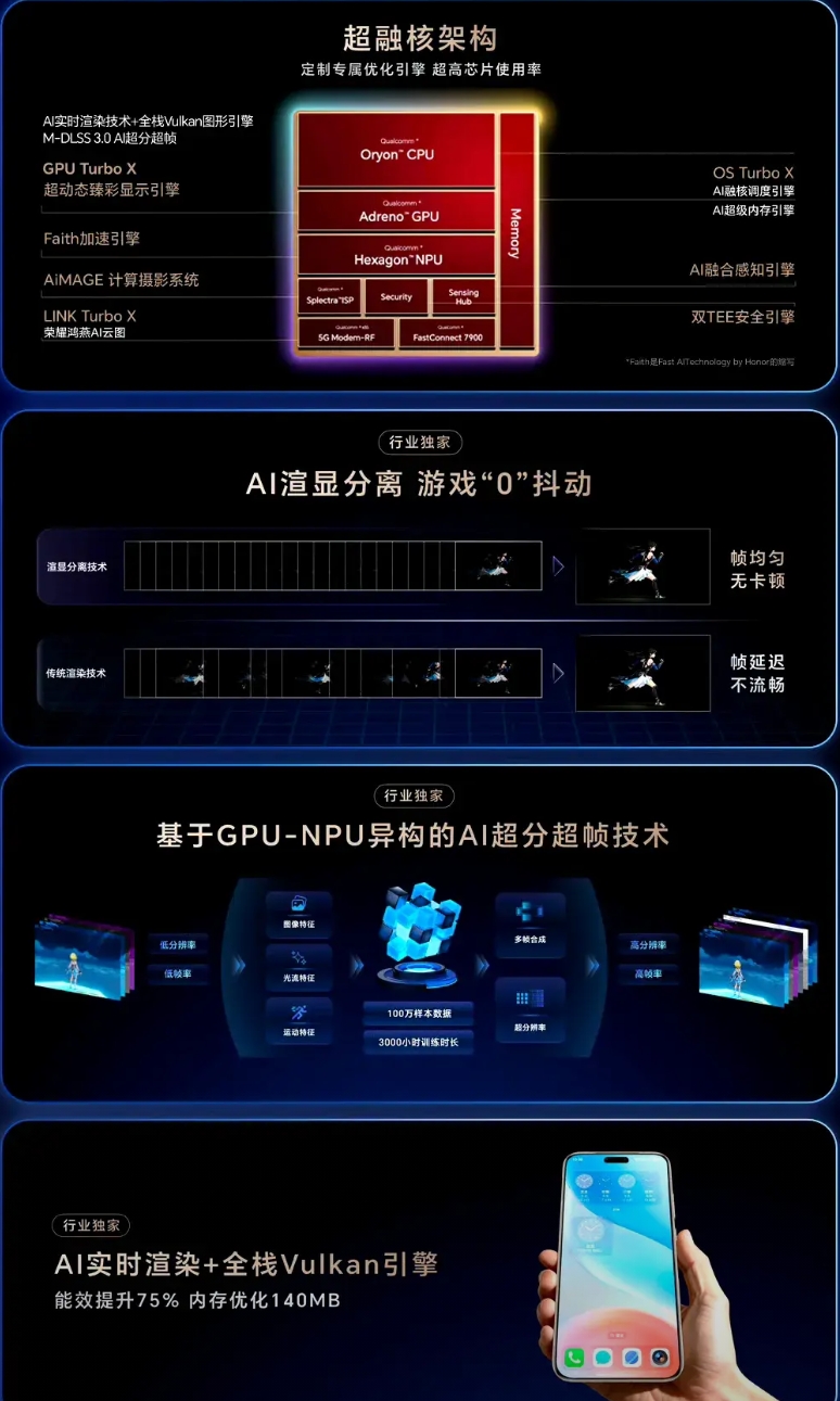 AI渲显分离实现游戏"0"抖动,AI超分超帧技术带来更流畅画面。全栈Vulkan引擎助力能效提升75%,高负载游戏下帧率依旧稳定。