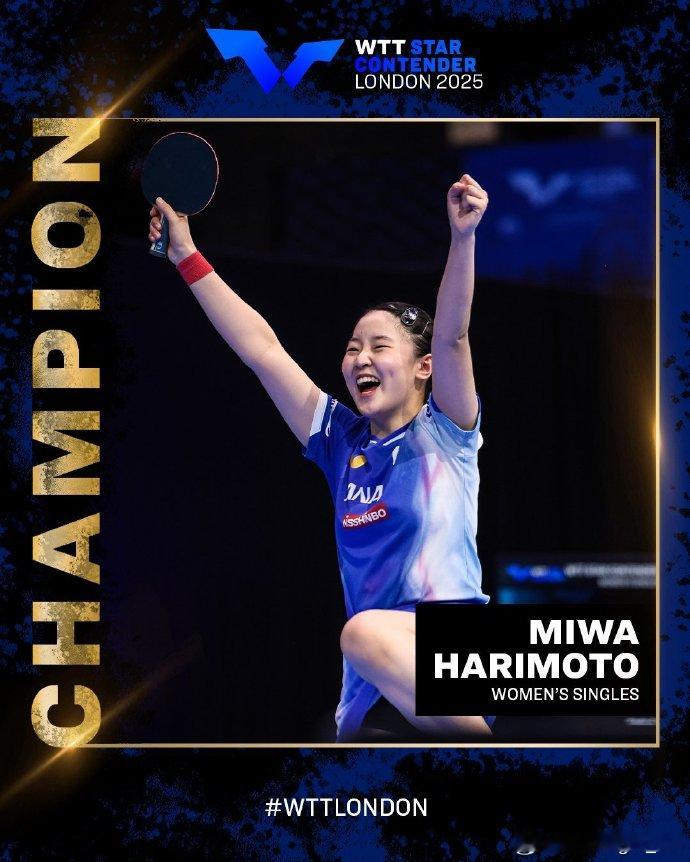 WTT伦敦球星挑战赛女单决赛,张本美和对战早田希娜,经过七局苦战,比分为:5-11、6-11、11-8、11-4、11-6、6-11、11-9,最终张本美和获得冠军。
