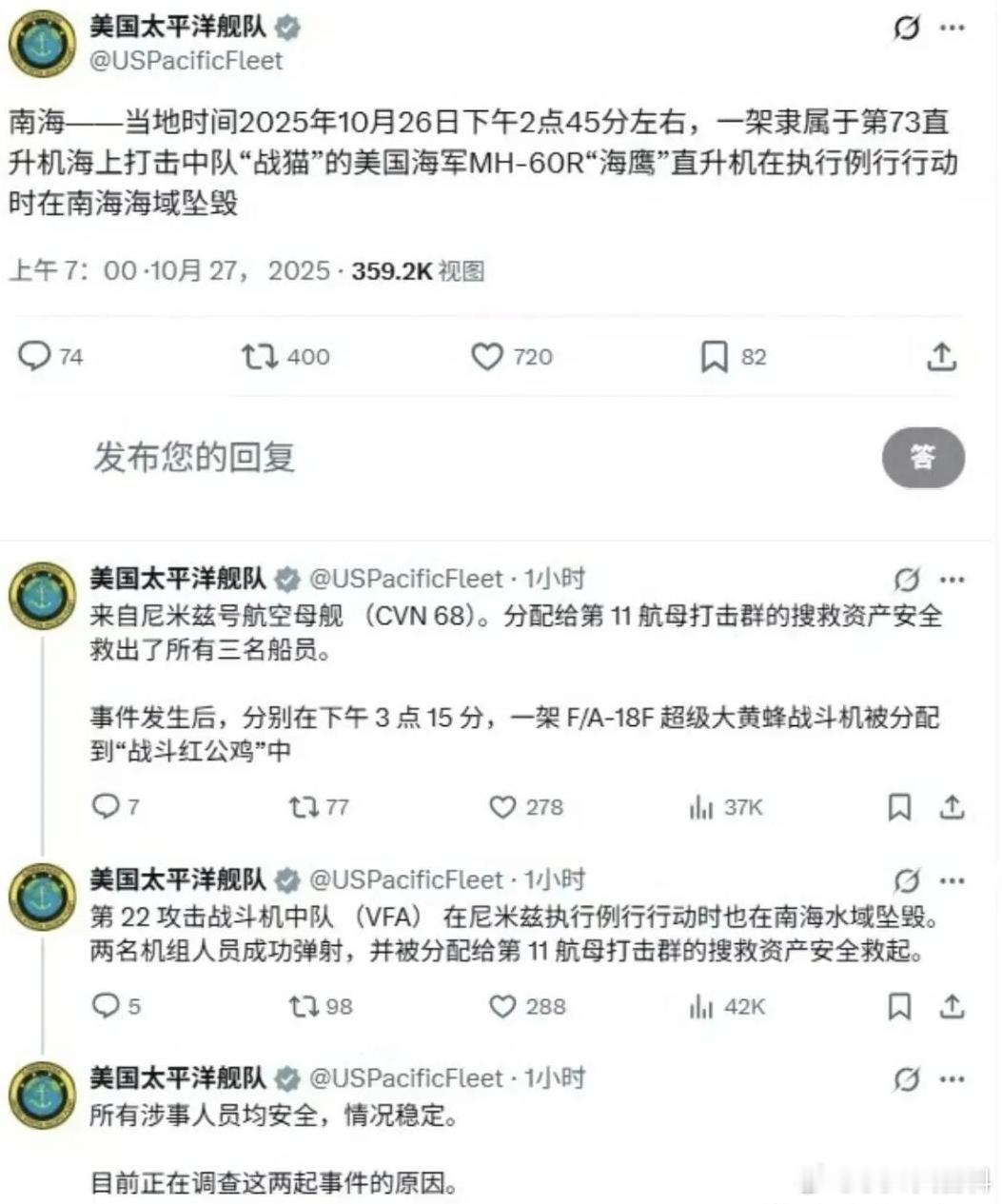 一起床就看到美航母两架战机坠入南海 ,第一反应是……谁干的?