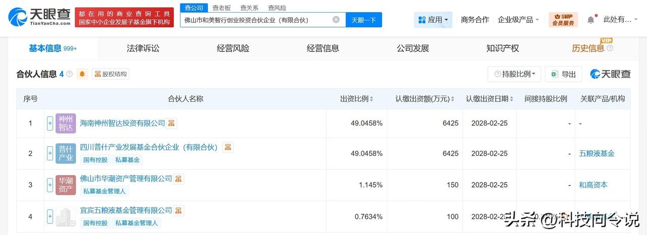 【五粮液等在佛山成立和美智行创投合伙企业出资额1.31亿】 天眼查工商信息显示
