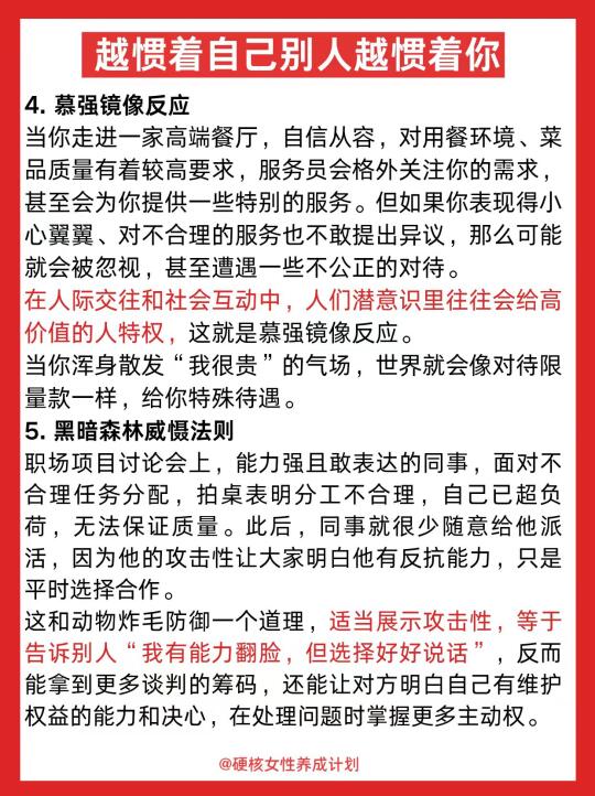 世界是个大型游乐场,当你把自己当成VIP玩家,所有设施都会为你调整转速。那些让你不舒服的规则,往往是因为你还在用普通票的心态玩贵宾区,当你把自己编译成限量版操作系统,全世界都会抢着下载你的适配器! 你只需要形成自己的一套行事风格,并发自内心不觉得有任何问题。那你身边的人就会自己调整,变换出一种能和你相处下去的模式和心态。你不想想办法,别人就会想办法。