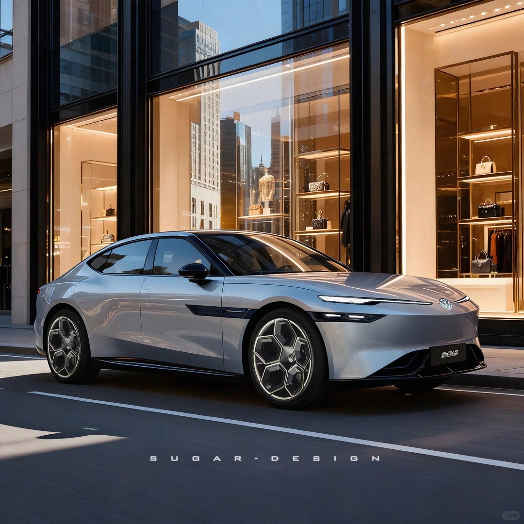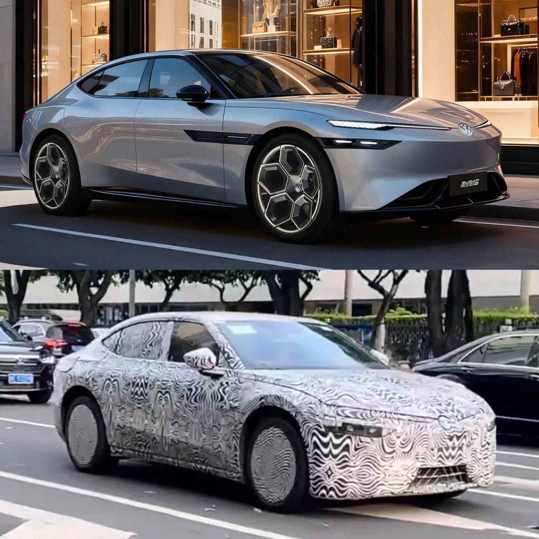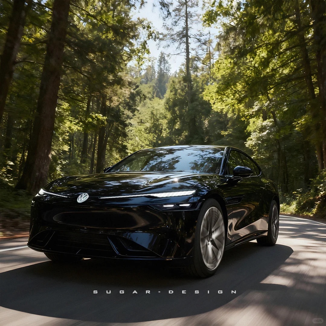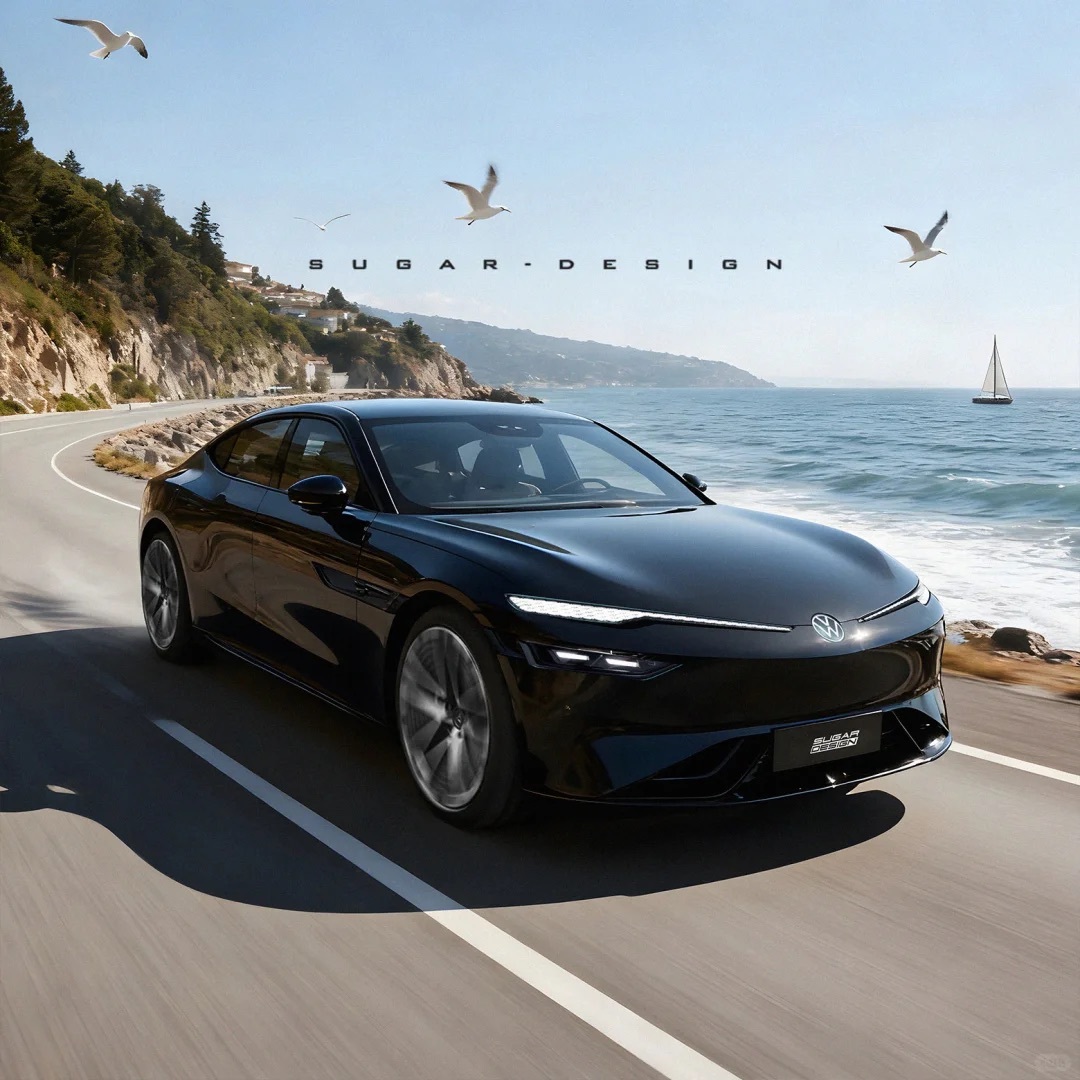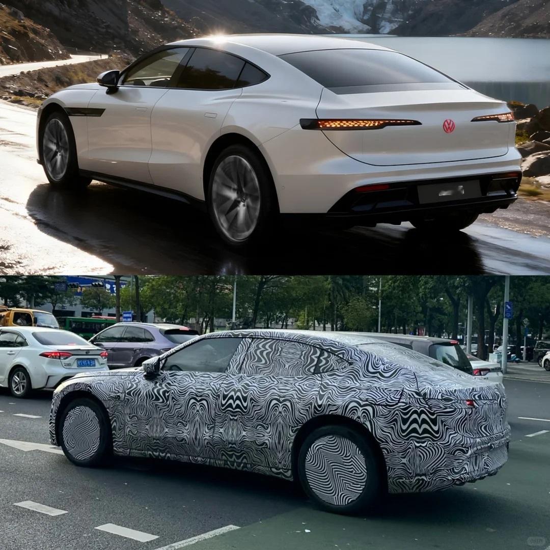 前脸可以轻易的看出和大众ID.EVO有着同样的家族语言,而侧面又不难看出就是小鹏新P7的设计风格,黑色A柱装饰件,溜背轿跑造型。