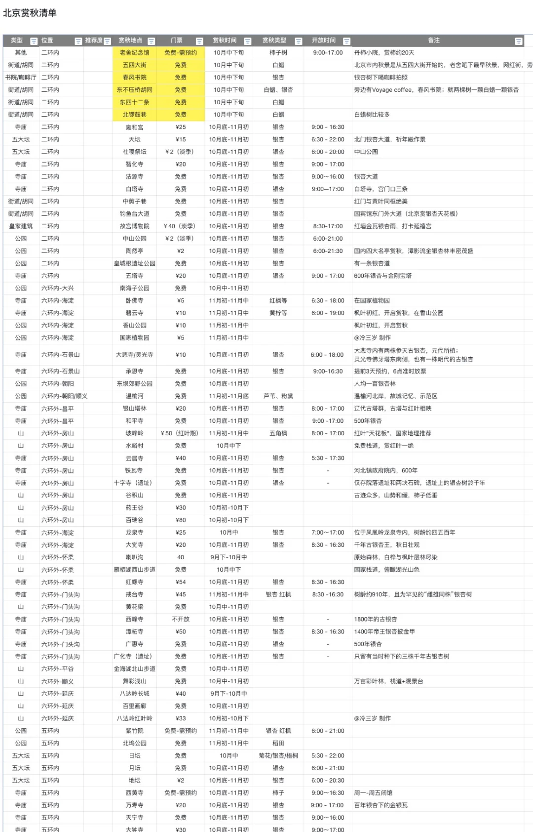 北京赏秋地图,名单,我也整理了,图2-3